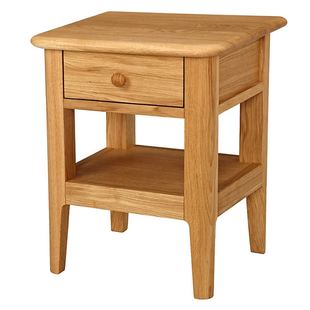 Item Code: This side table features one drawer and a fixed shelf for handy storage. With a blonde oil finish, its timeless, natural look is sure to suit most interior decors.This is a Made to Order itemAll Made to Order items are manufactured as per the order supplied by you.We are unable to accept cancellation or accept any extra cost that may incur due to wrong information provided by you at the time you placed the order.We will confirm all sizes/colours/finishes in written email (order confirmation) with you before going ahead with production of your order.