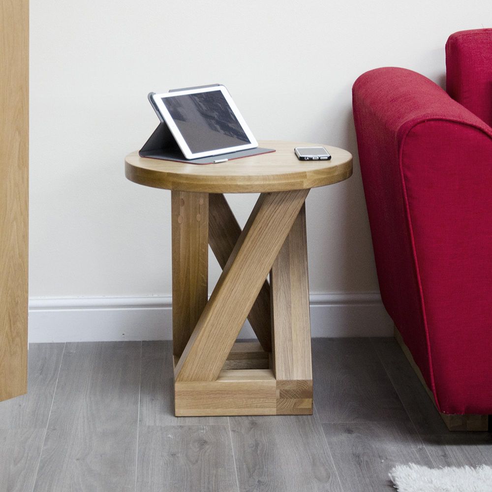 Choose the Z Designer Oak Round Lamp Table for its eye-catching design, quality craftsmanship, and natural appeal. A small piece that makes a strong impression.