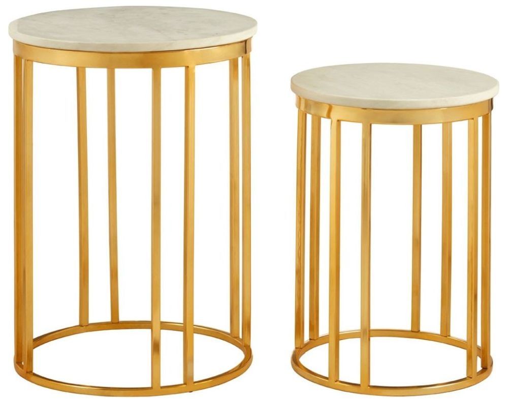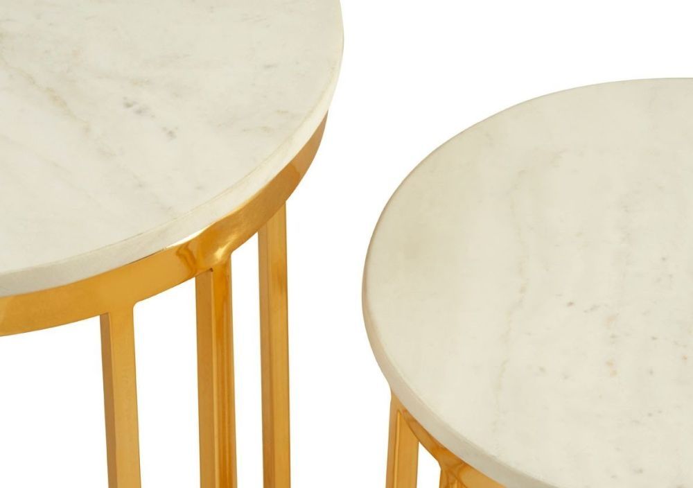 Templar Side Tables - Set of 2 - Round - White Marble and Gold