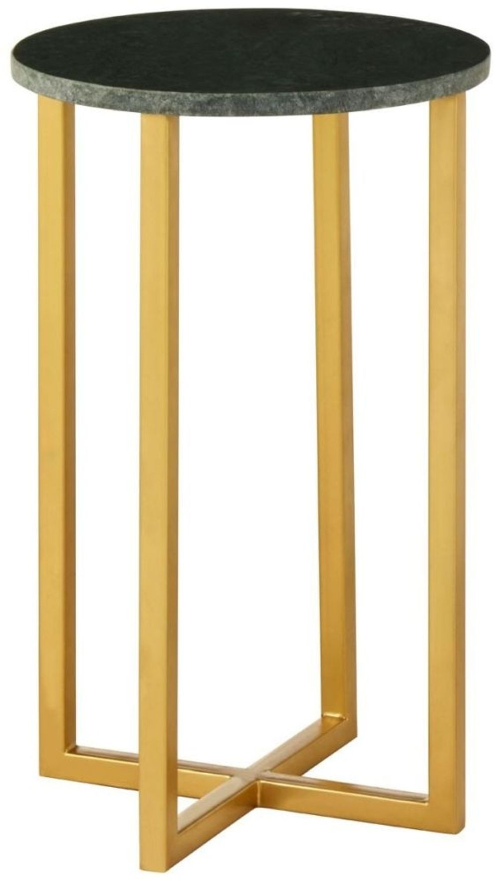 Item Code: 5502829 The Templar small round side table has an intersecting iron base with a rich gold finish that contributes to its luxurious aesthetic. This side table has an on-trend green marble top which features contrasting black veining. The smooth marble provides a natural counterpoint to that table's clean-lined, warm metallic frame. Minimal and understated, this contemporary-luxe style table has a latticed base that enhances its visual appeal.