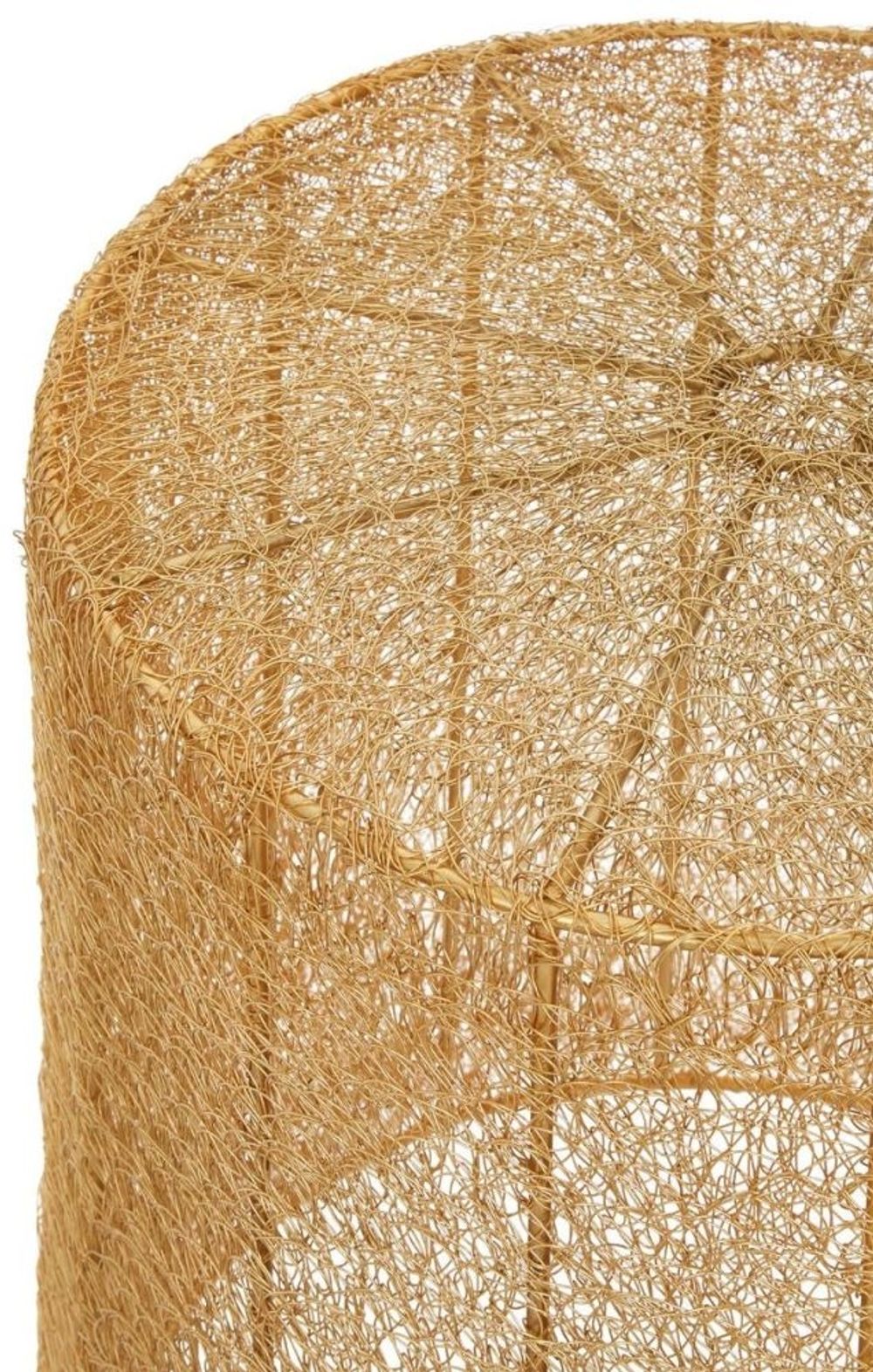Item Code: 2405385 Sinuous strands of iron form a golden canopy over the frame of these accent tables. Part of the eclectic Templar range, these tables add a warm metallic accent to the living room thanks to their gold finish. Their tubular frames are formed into a cylindrical shape and the delicate ironwork that dresses them makes them semi-transparent. Each table has been crafted by hand to give it its own unique variations. This item is handcrafted so please expect slight variations to the finish.