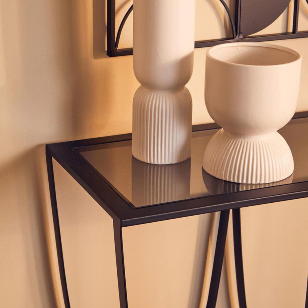 Trento Side Table - Glass with Black Metal Base