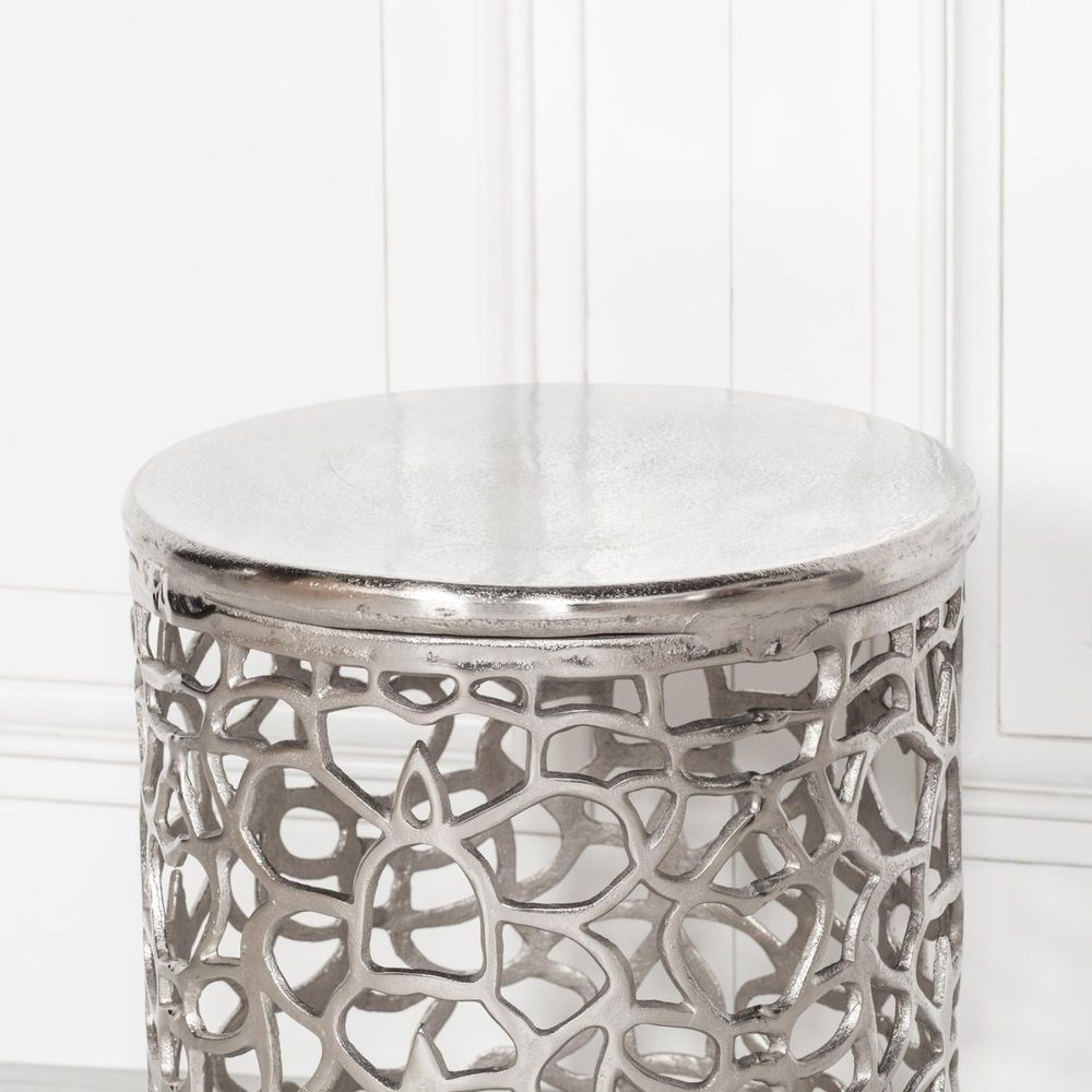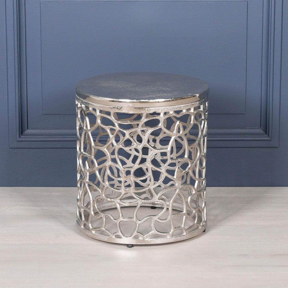 Item Code: FM209 An orein design and modern look with a high quality finish. This side table is made of durable aluminium construction and its stylish, round shape brings a classic touch to any room. A great addition to your living space, this piece does not feature storage options and is easy to assemble. Bring sophistication to your home with this unique, seamless aluminum table.