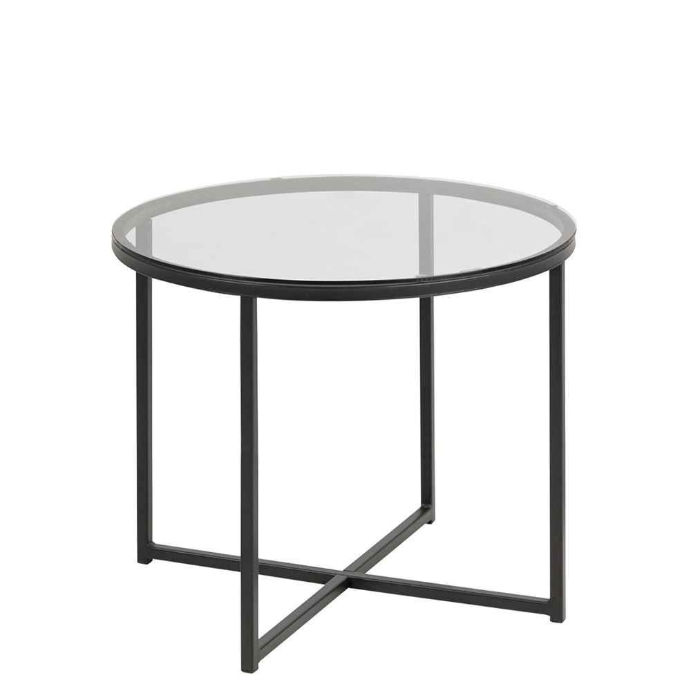 Cross Side Table - Round - Smoked Glass and Black