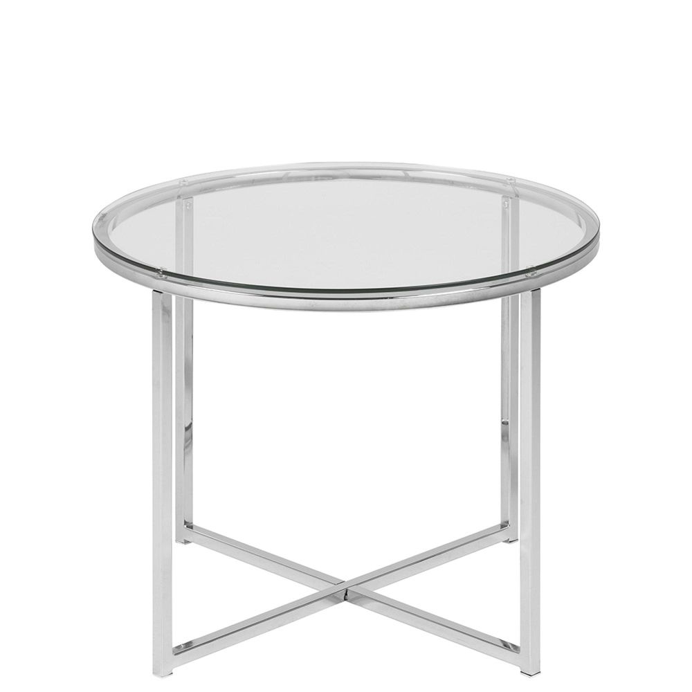 Cross Side Table - Round - Clear Glass and Chrome
