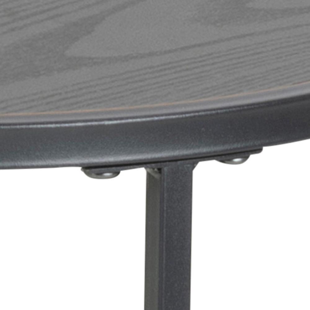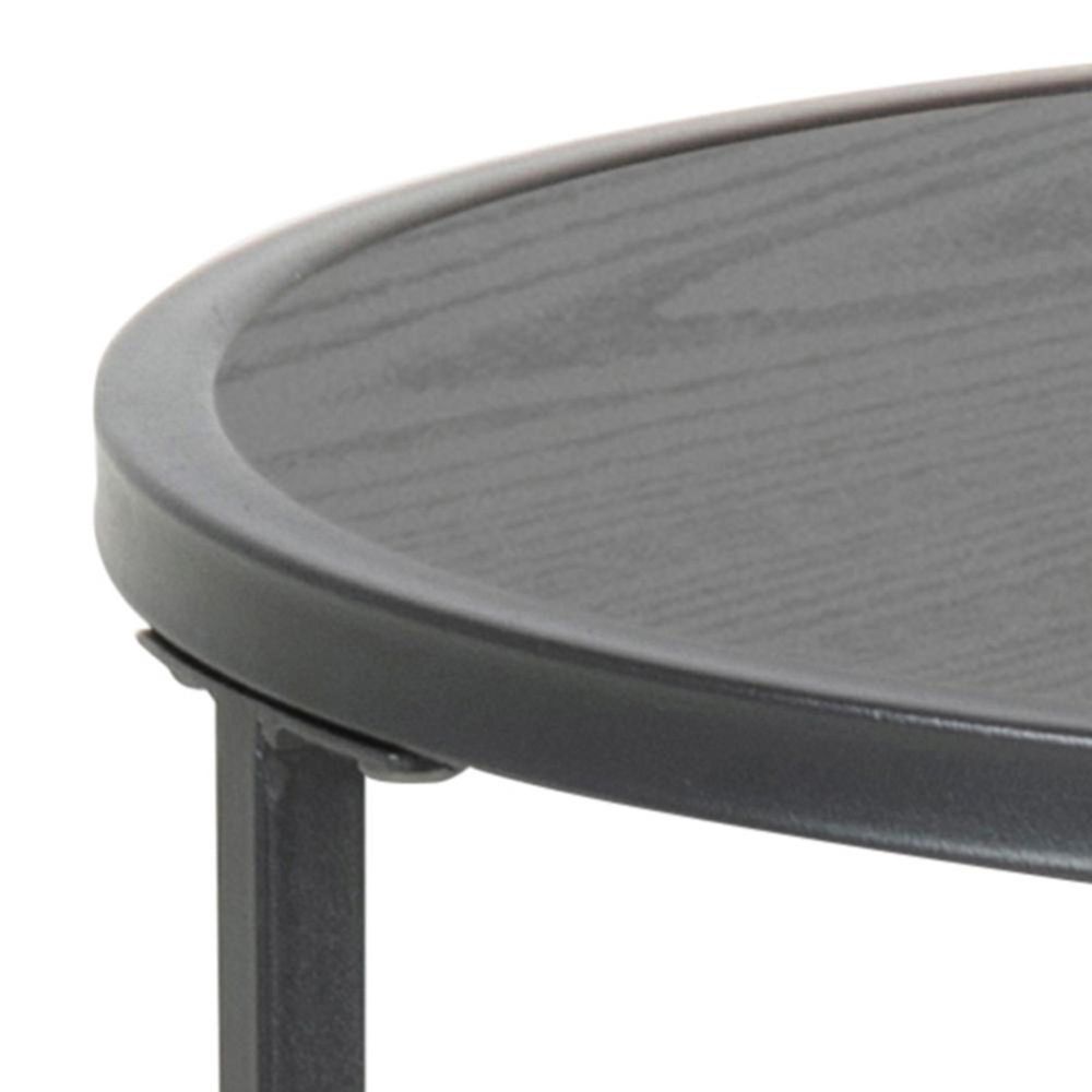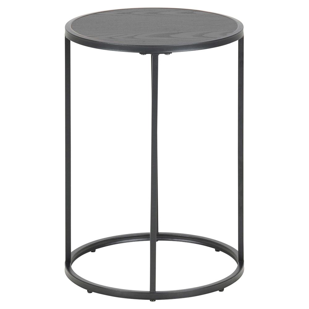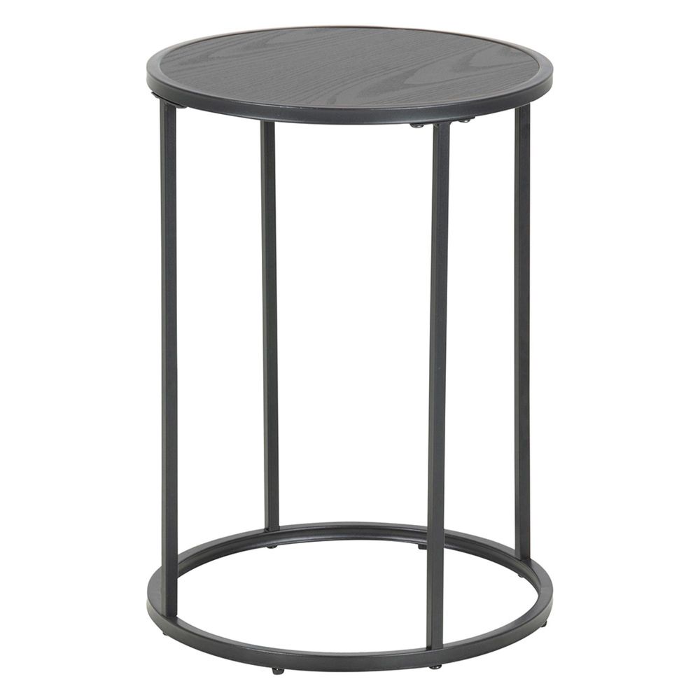 Item Code: 83647 This chic side table features a black finish melamine top supported by metal legs for a timeless look. The round design is perfect for any living space and doesn't take up much room. Perfect for display items, lamps and more without any storage. A simple and stylish piece to complete any room decor.