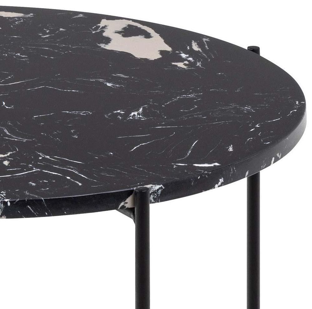 Avila Side Table - Large - Round - Black Marble Effect