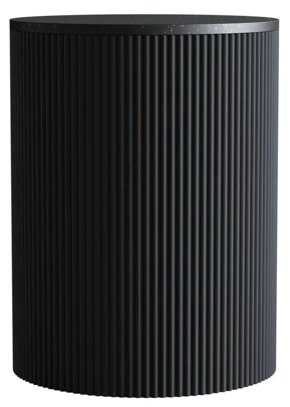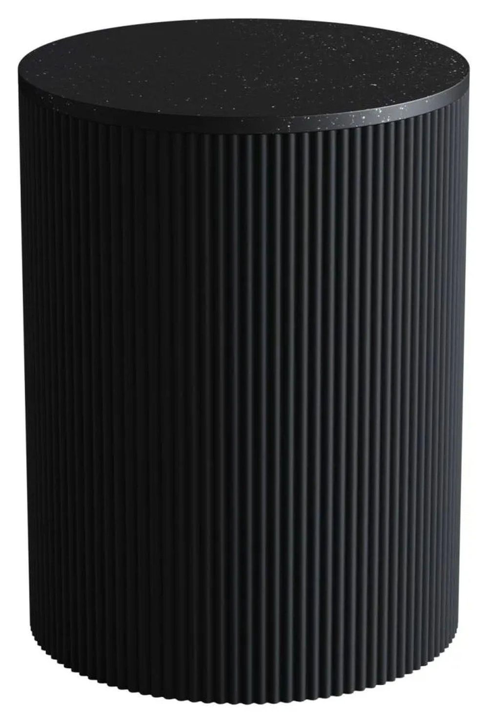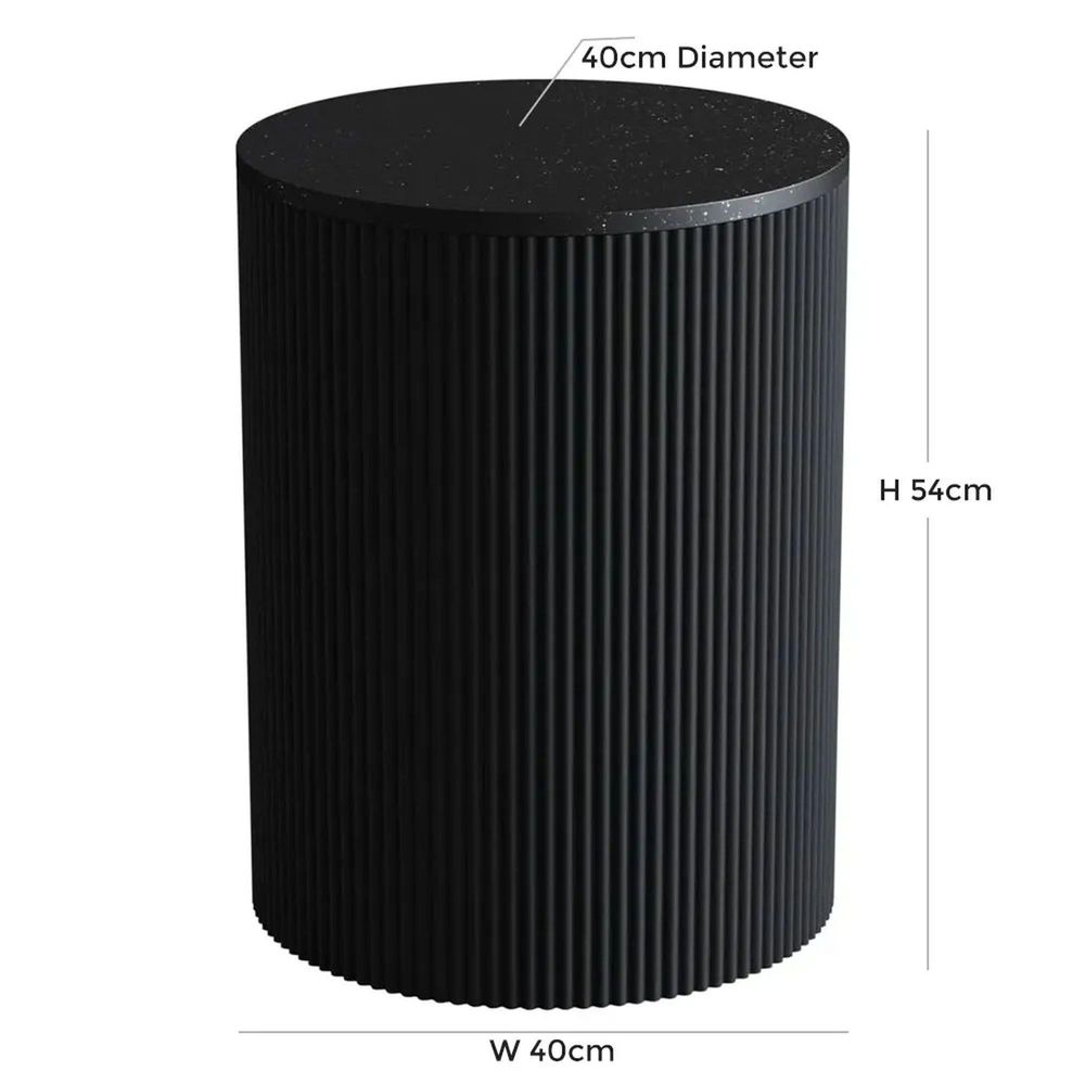 Clearance - Carra Marble Side Table Black Round Top with Fluted Ribbed Drum Base - Brand New Item