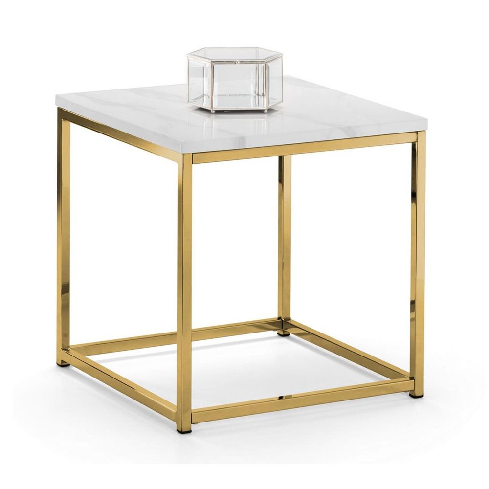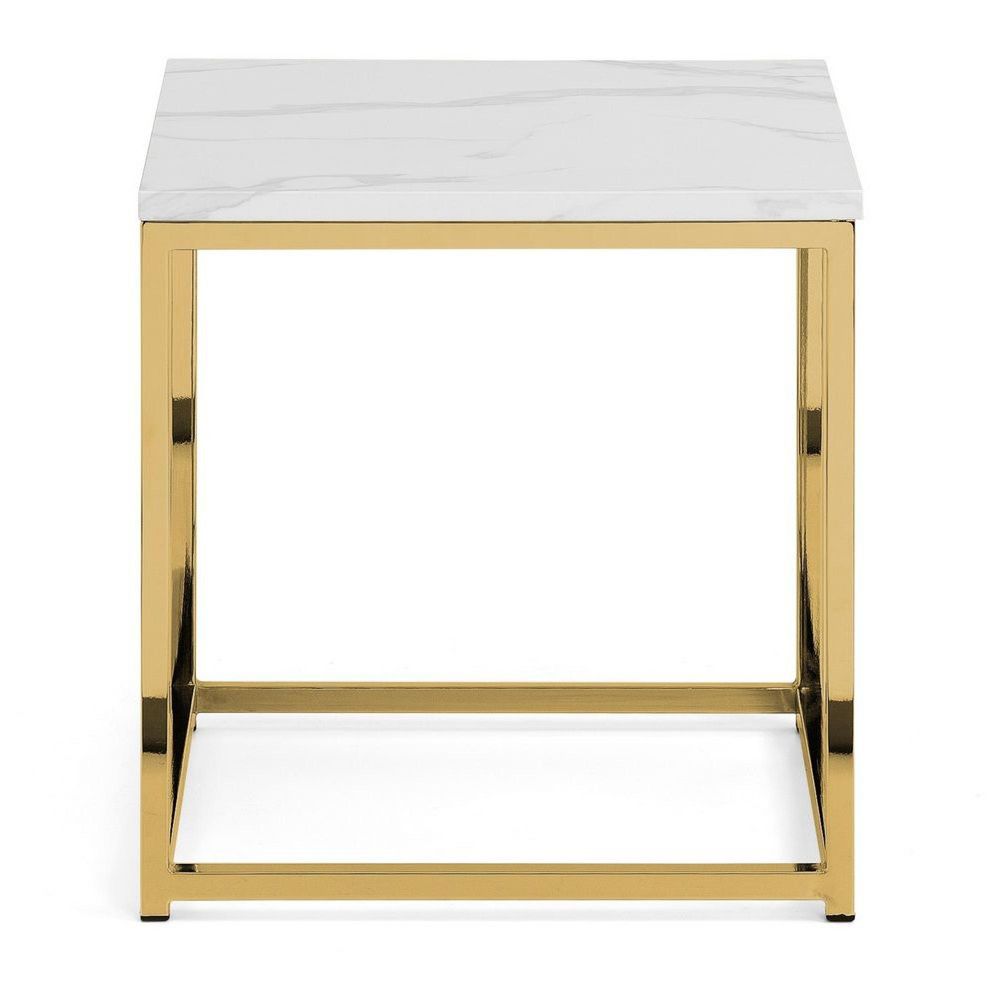 Scala Lamp Table - Square - White Marble Effect and Gold