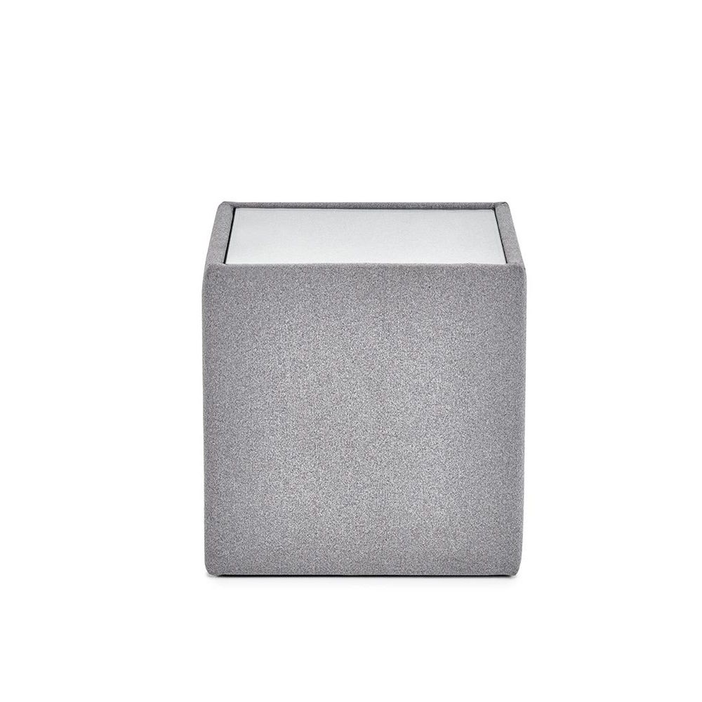 Item Code: ROH004 The Rohe Lamp Table will add a touch of class and style to any home. The table features platinum grey wool effect fabric with an exquisite square glass top.