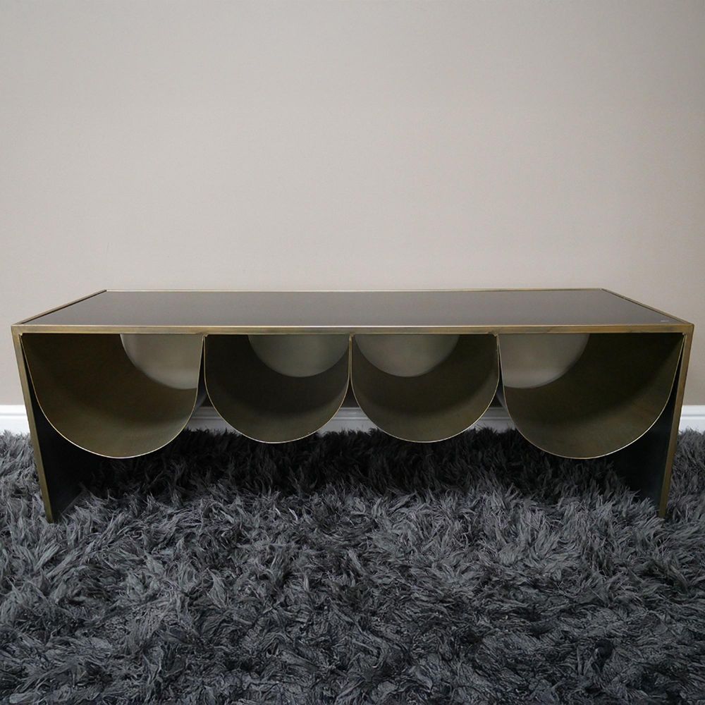 Side Table - Black Glass and Metal - Low - Large