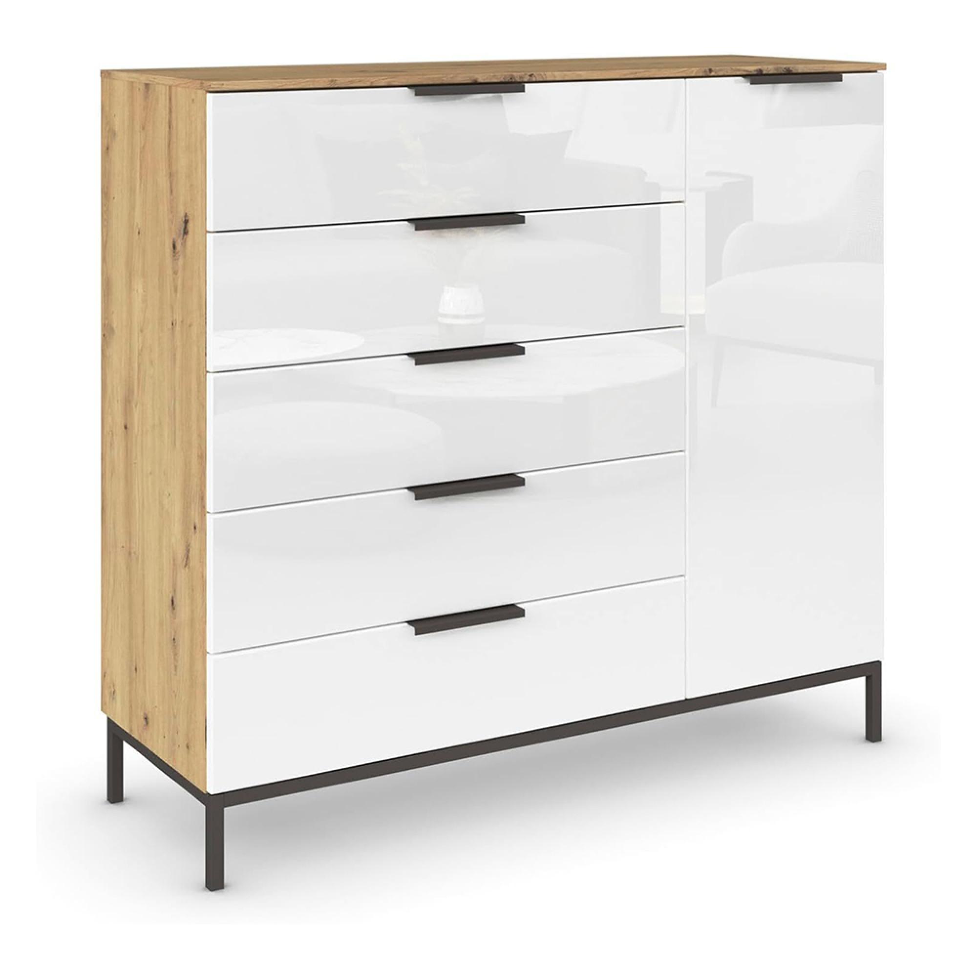 Rauch Flipp 1 Door Sideboard with Metal Base - 120cm - Artisan Oak and White Glass