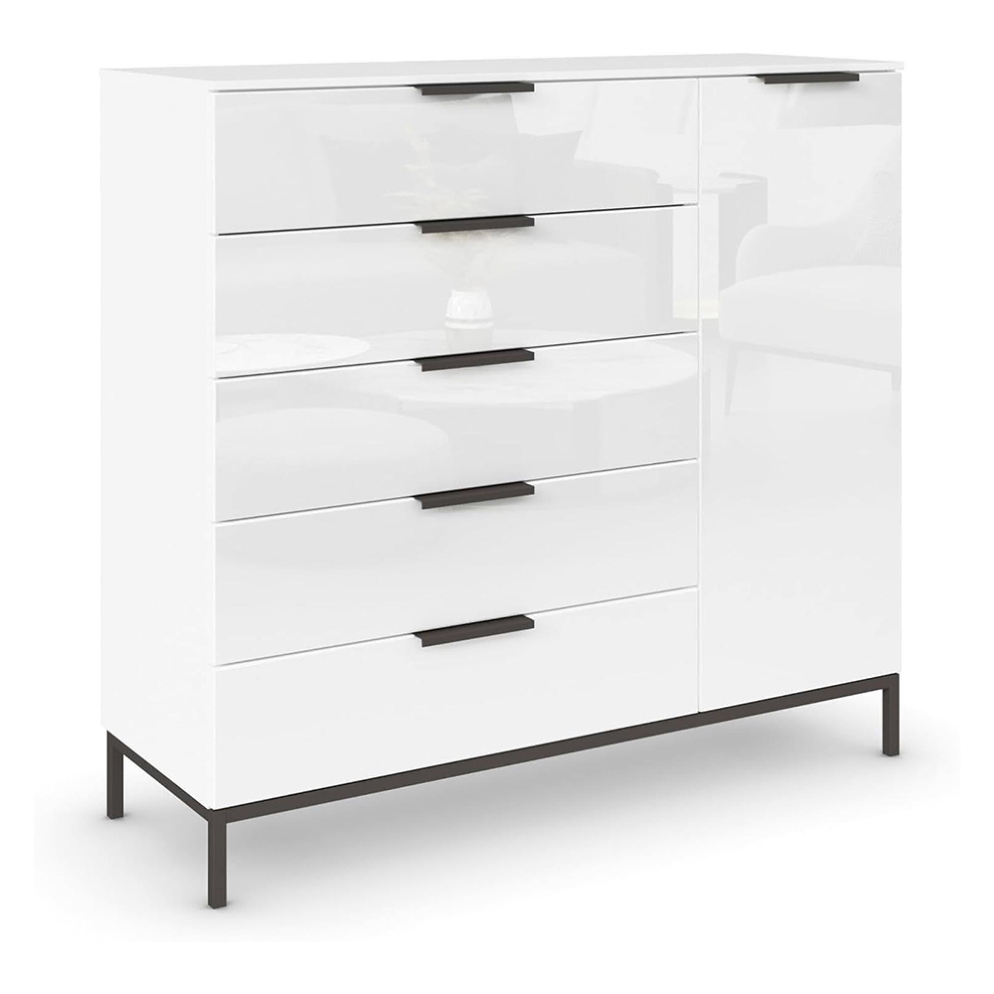 Rauch Flipp 1 Door Sideboard with Metal Base - 120cm - Alpine White and White Glass