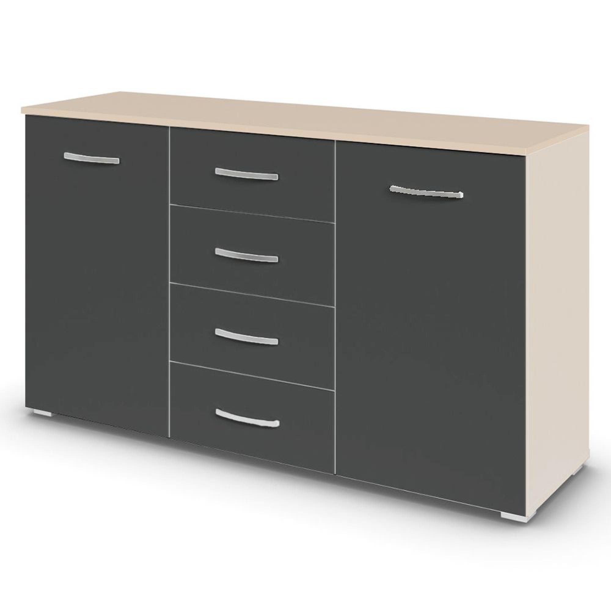 Rauch Aditio 2 Door Medium Sideboard with 4 Drawer - 120cm - Champagne and Metallic Dark Grey