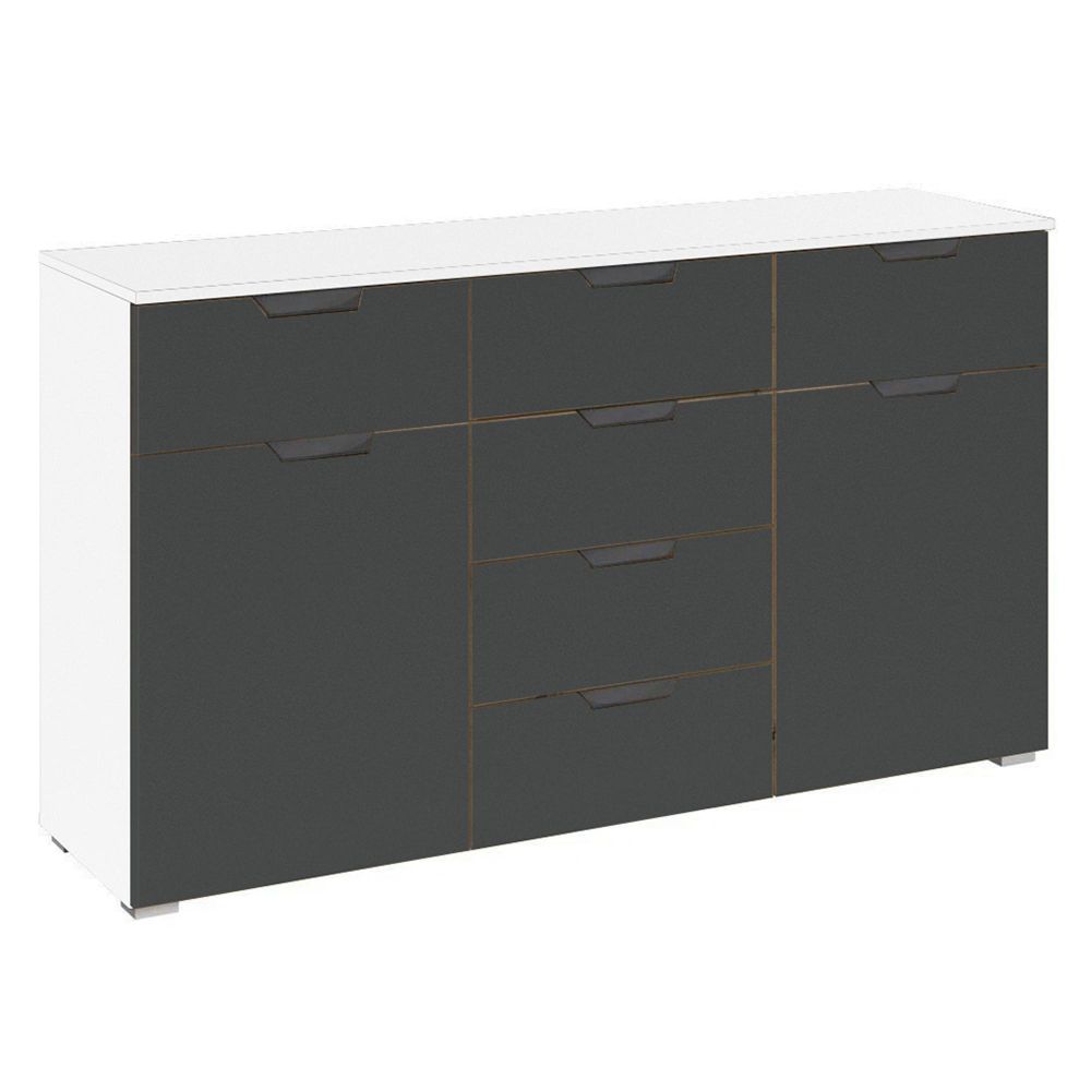 Aditio Medium Sideboard - 120cm - 2 Door - 6 Drawer - Alpine White & Metallic Dark Grey