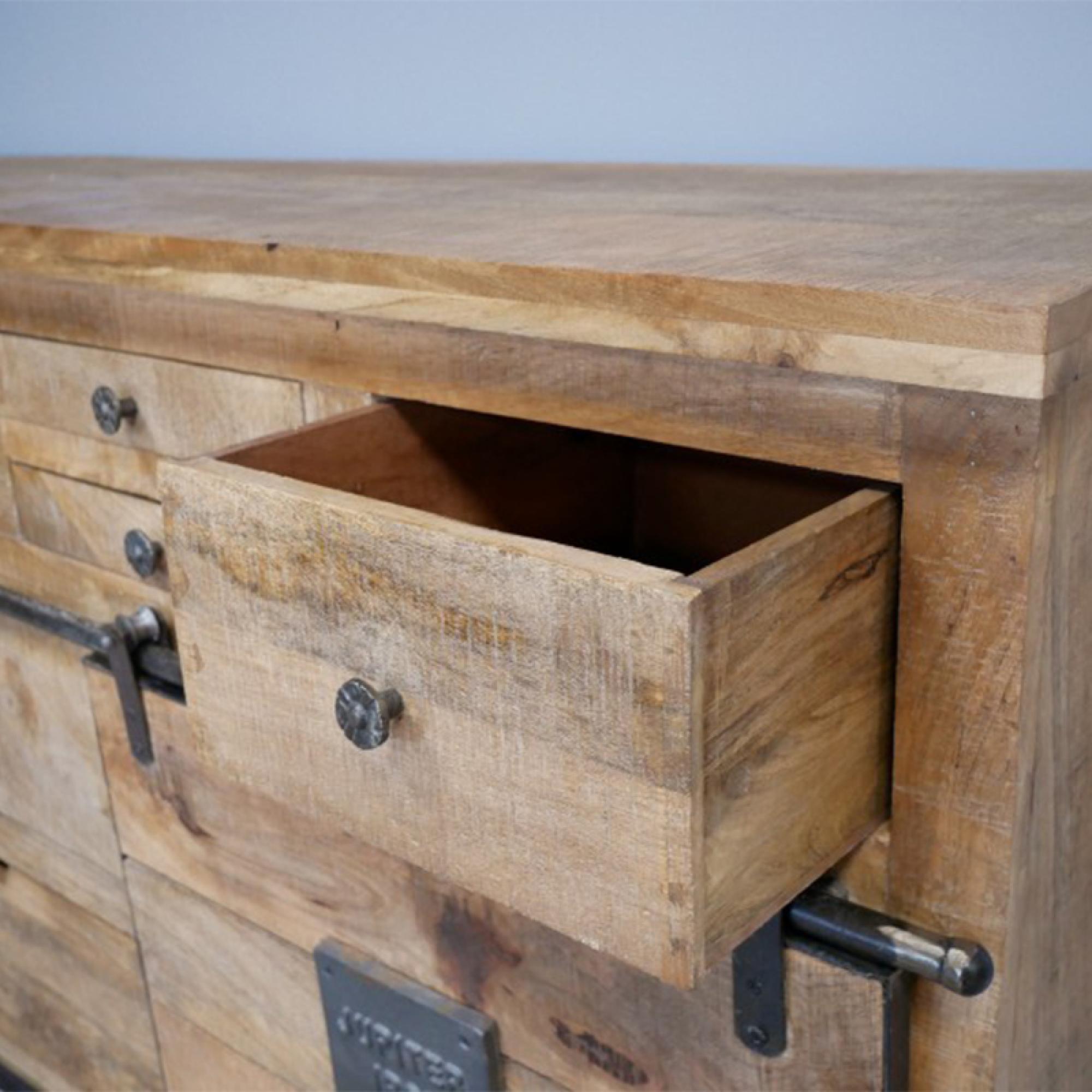 Dutch Industrial Mango Wood 2 Sliding Door Large Sideboard