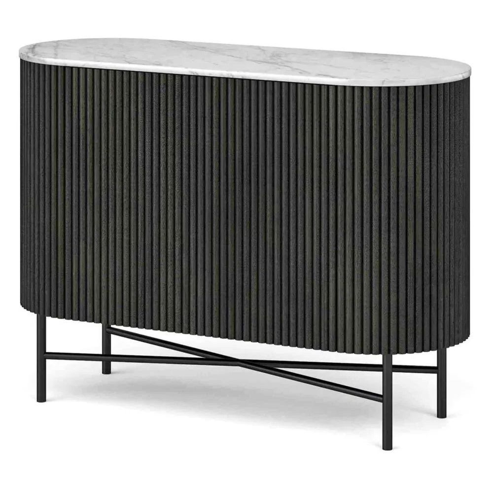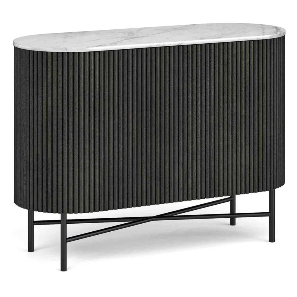 Lucas Black Sideboard - 100cm Small 2 Door Fluted Curved - White Marble Top