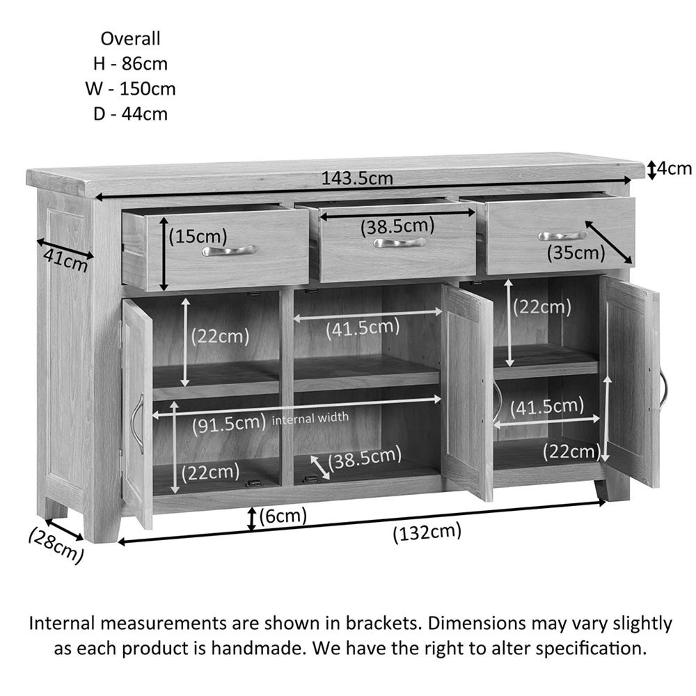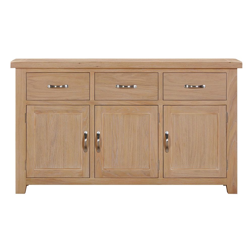 The Wilmont Oak 150cm Medium 3 Door Sideboard is a refined storage solution designed to bring both function and style into your home. Crafted with a combination of solid oak, oak veneer, rubberwood, and pine, this piece showcases expert craftsmanship and long-lasting quality.