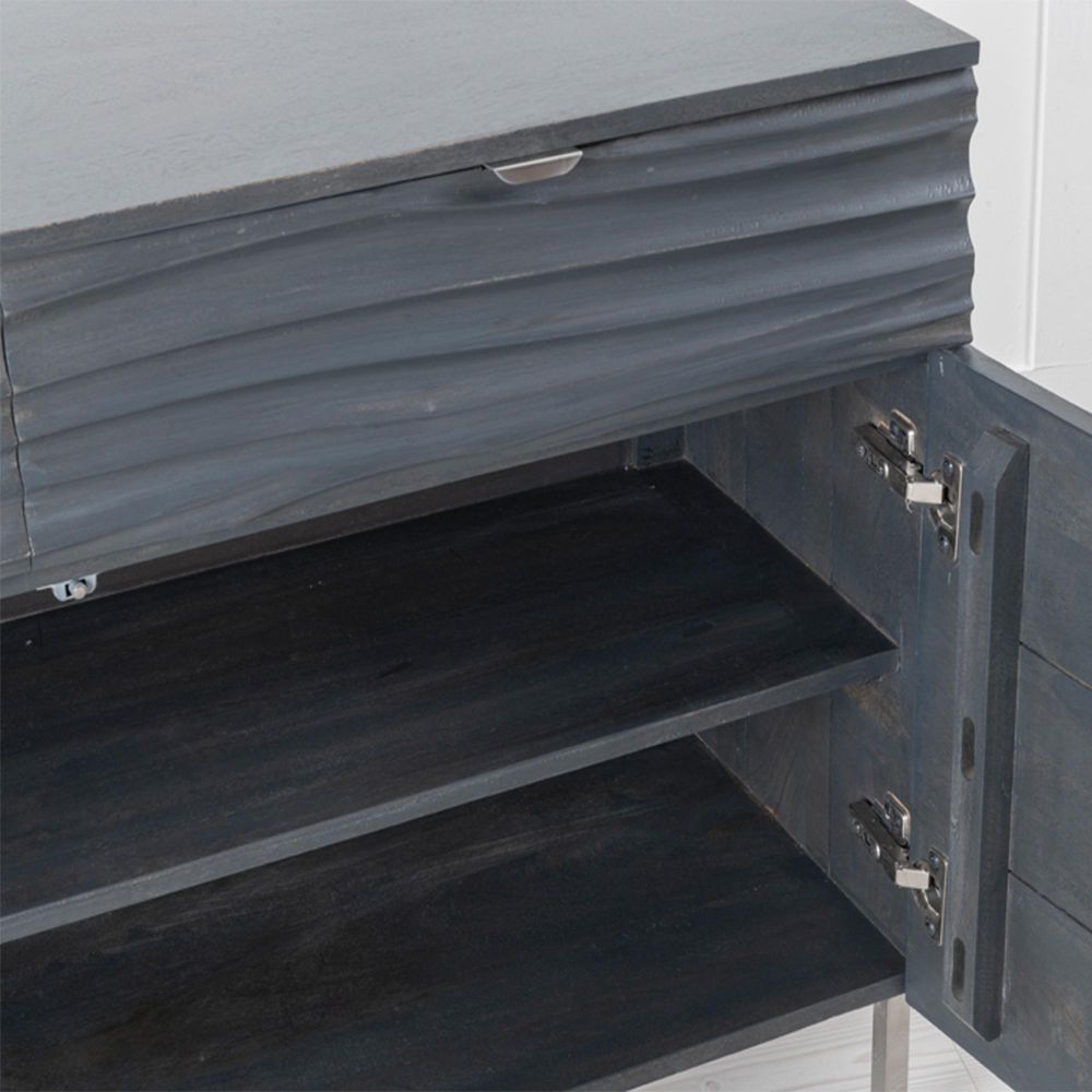 Clearance - Ripple Grey Wave Mango Wood 120cm Small Sideboard with Black Geometric Trim - 2 Doors - Brand New Item