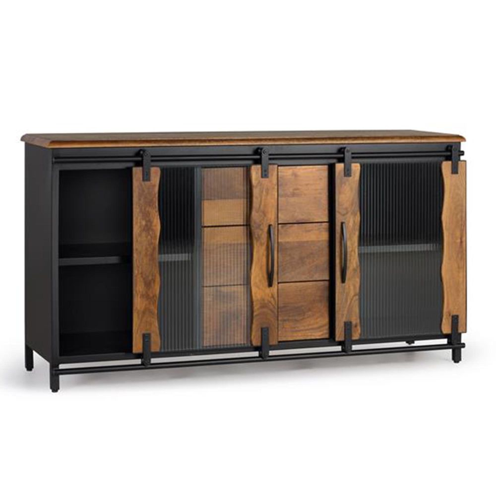 Item Code: 1426 SIDEBOARD WITH 2 SLIDING DOORS AND 3 DRAWERS IN INDUSTRIAL STYLE MADE OF MANGO WOOD AND METAL.