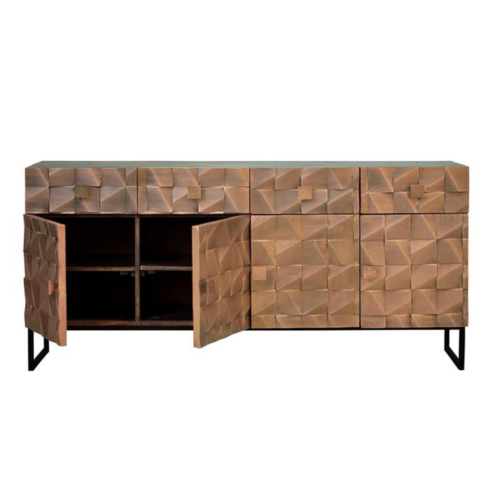 Pinole Sideboard - Copper Geometric - Mango Wood - 4 Door - Large - 170cm