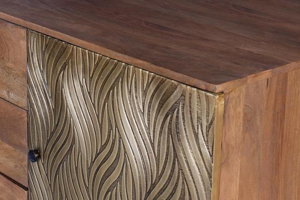 Item Code: 6762 Solid Mango Tree Wood Sideboard With Bronze Veneered Front