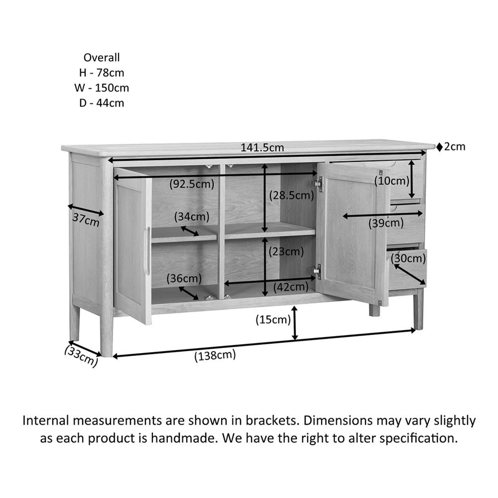 At 150cm wide, it offers practical storage while remaining sleek enough to fit comfortably in dining rooms, living spaces, or open-plan interiors. Designed to work beautifully with other pieces from the Twyford Oak collection, it’s a versatile choice for any home.