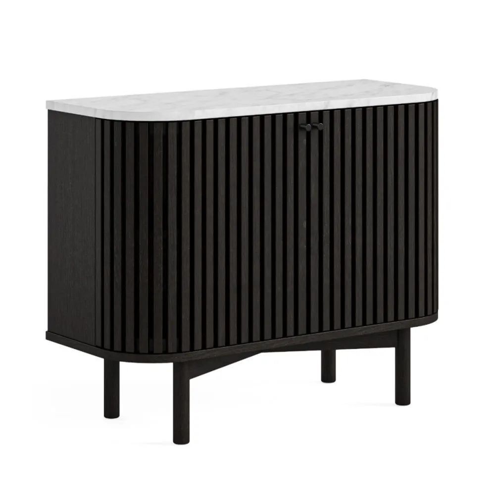 Bring understated elegance and everyday practicality to your home with the Soho Black 2 Door Slatted Small Sideboard – White Marble Top. With its rich finish, luxurious marble detail, and expert craftsmanship, it’s a compact piece that adds both beauty and purpose to any room.