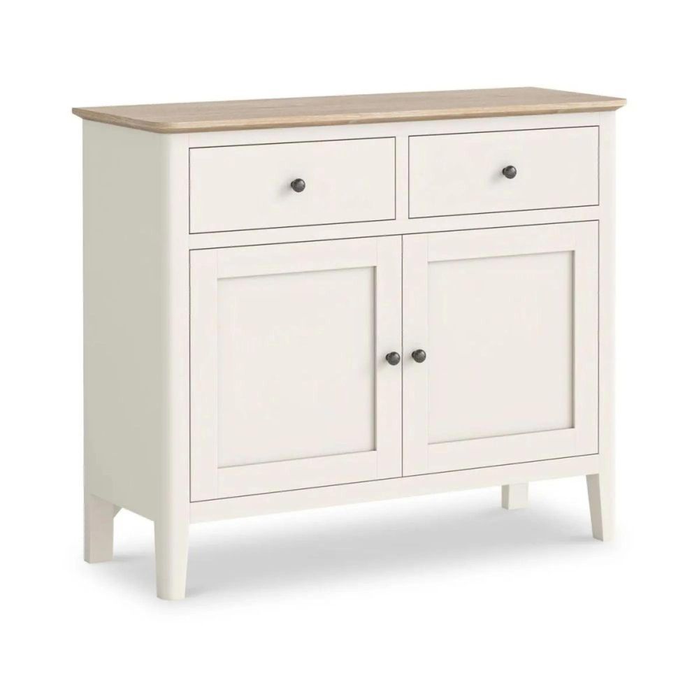 The Marlow White Painted 2 Door Sideboard – 95cm is a versatile and stylish storage solution for your living or dining space. Crafted from durable wood with a smooth lacquered painted finish in coconut white or navy, and topped with a natural oiled oak veneer, it combines timeless design with practical functionality.