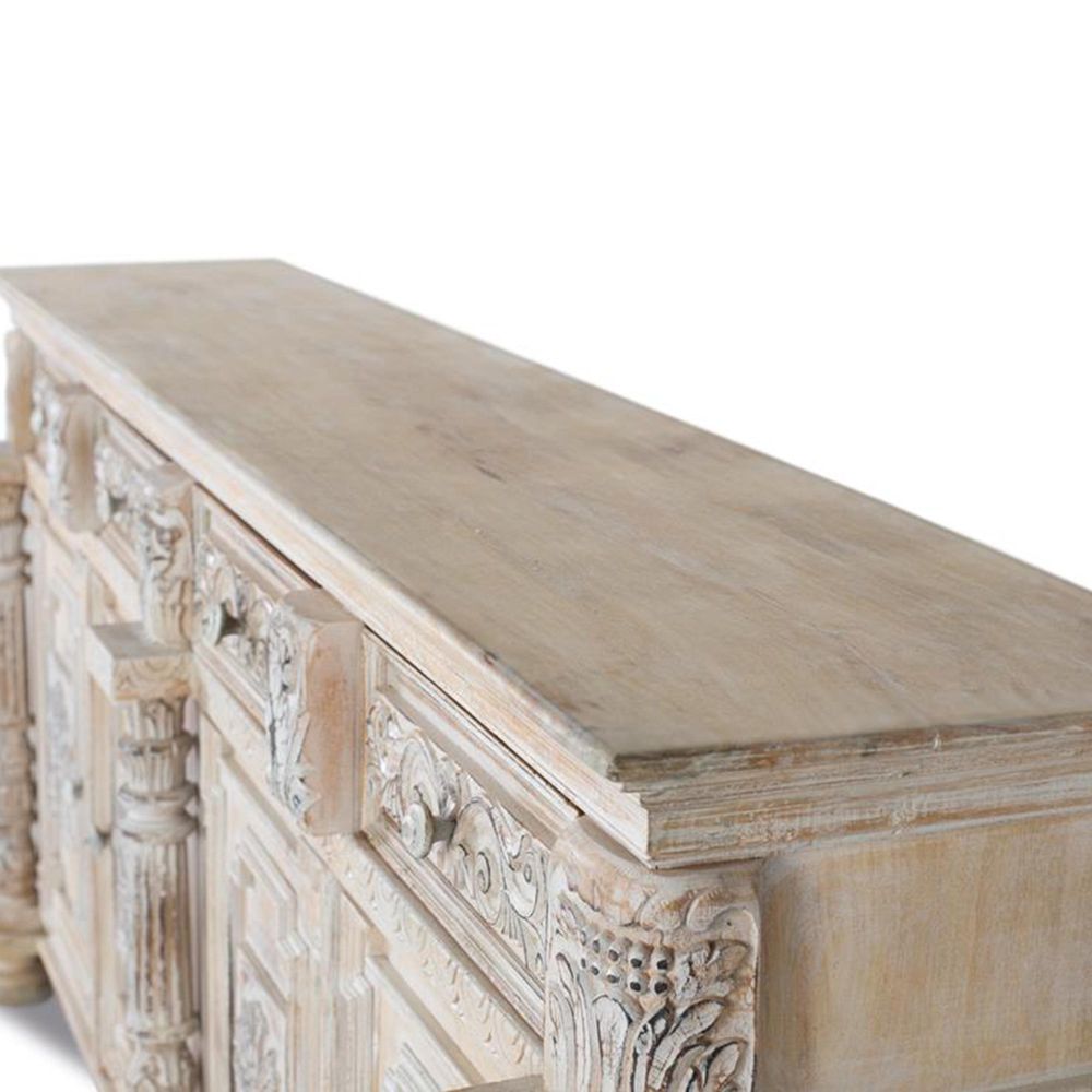 Halambres Sideboard - Distressed Carved Mango Wood - 4 Door - Extra Large - 225cm