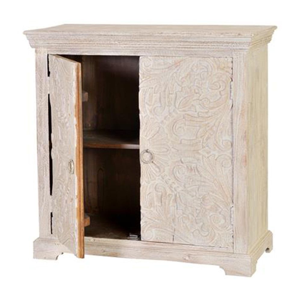 Isqari Sideboard - White Washed Carved Mango Wood - 2 Door - Small - 90cm
