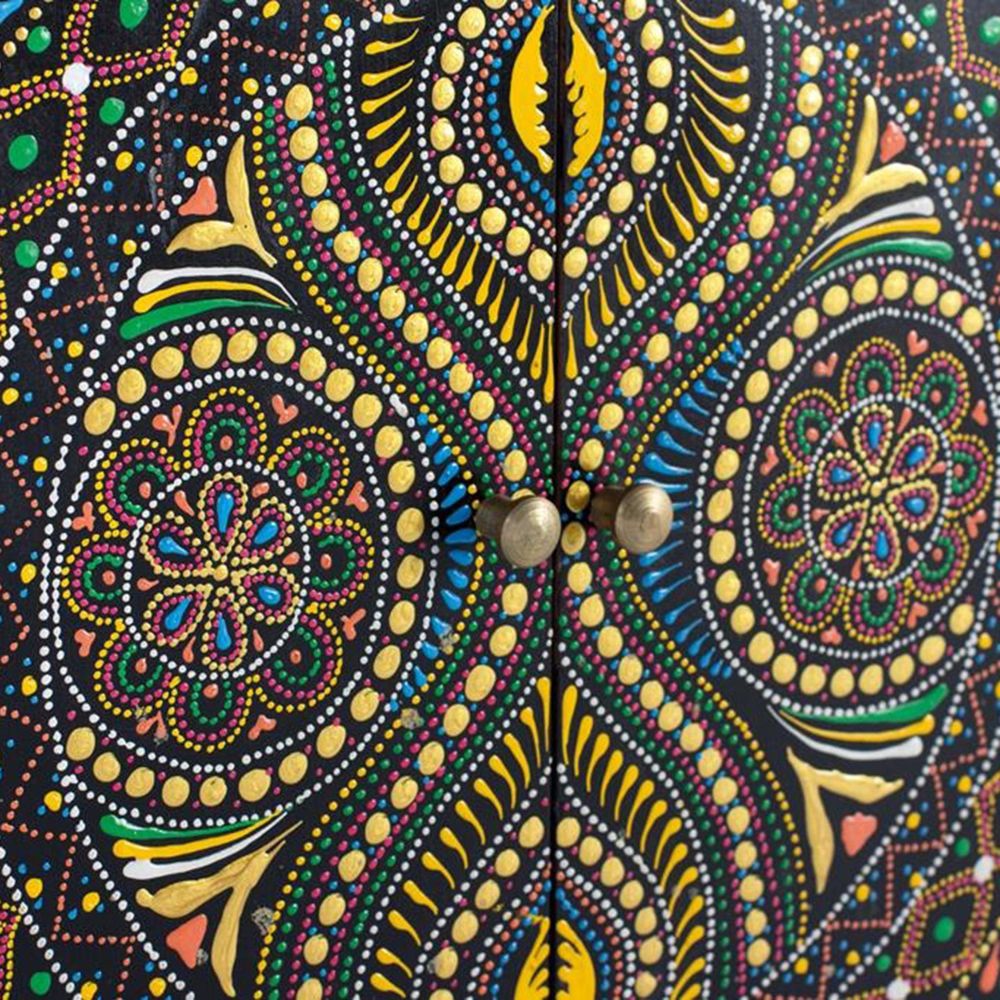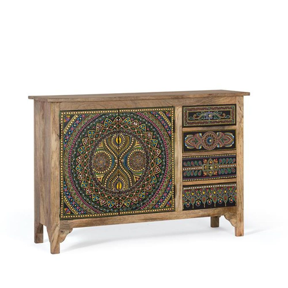 Item Code: 1446 Sideboard With 2 Doors And 4 Drawers Made Of Mango Wood, With Hand Painted Details.