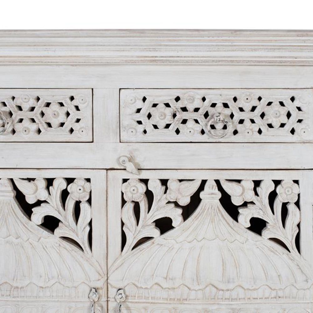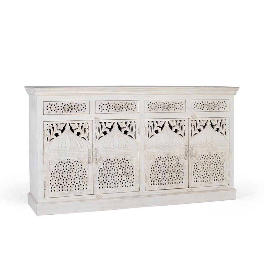 Lomax Sideboard - White Carved Mango Wood - 4 Door - Extra Large - 180cm