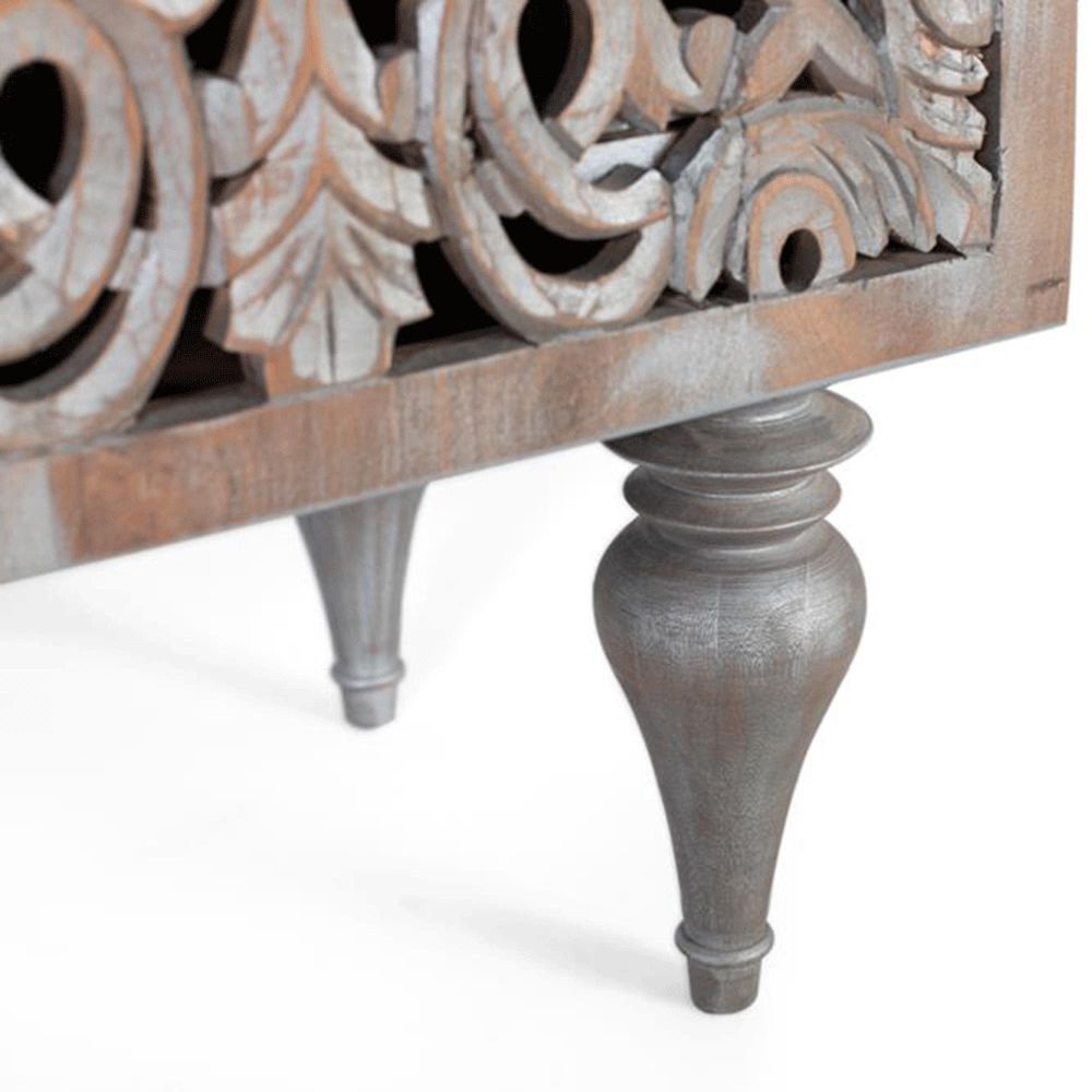 Edith Sideboard - Grey Carved Mango Wood - 2 Door - Medium - 150cm