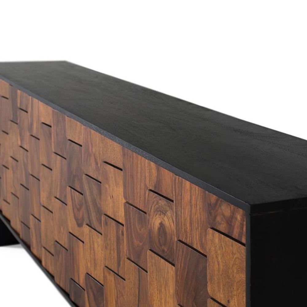Item Code: 2164 Natural Elegance And Contemporary Character Combine In This Sideboard. Made Of Durable Mango Wood, Its Frame Features A Wenge Finish. The Four Push-Open Doors, Crafted From Sheesham Wood In A Warm Walnut Tone, Feature An Original Design Composed Of Overlapping Square Pieces, Creating An Effect Of Volume And Depth. Inside, Large Shelves Offer Ample Storage Capacity. The Unit Rests On A Base With Simple Lines, Providing Stability And Visual Lightness To The Design.