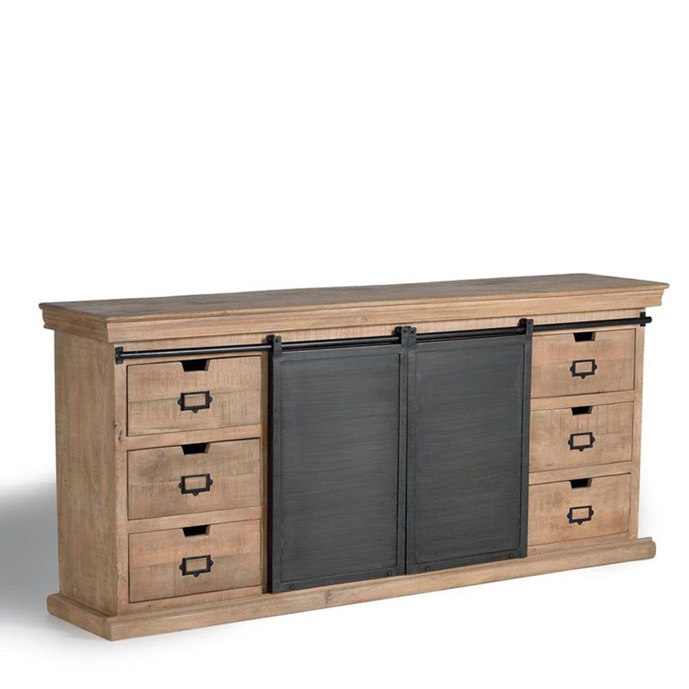 Item Code: 6089 Sideboard With 6 Drawers And 2 Sliding Doors In Industrial Style, Made Of Mango Wood And Metal.