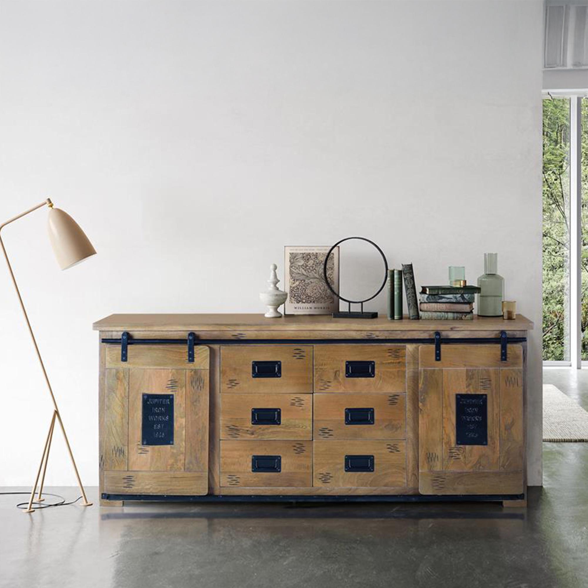 Item Code: 1331 INDUSTRIAL STYLE SIDEBOARD IN MANGO WOOD WITH 2 SLIDING DOORS AND 6 DRAWERS
