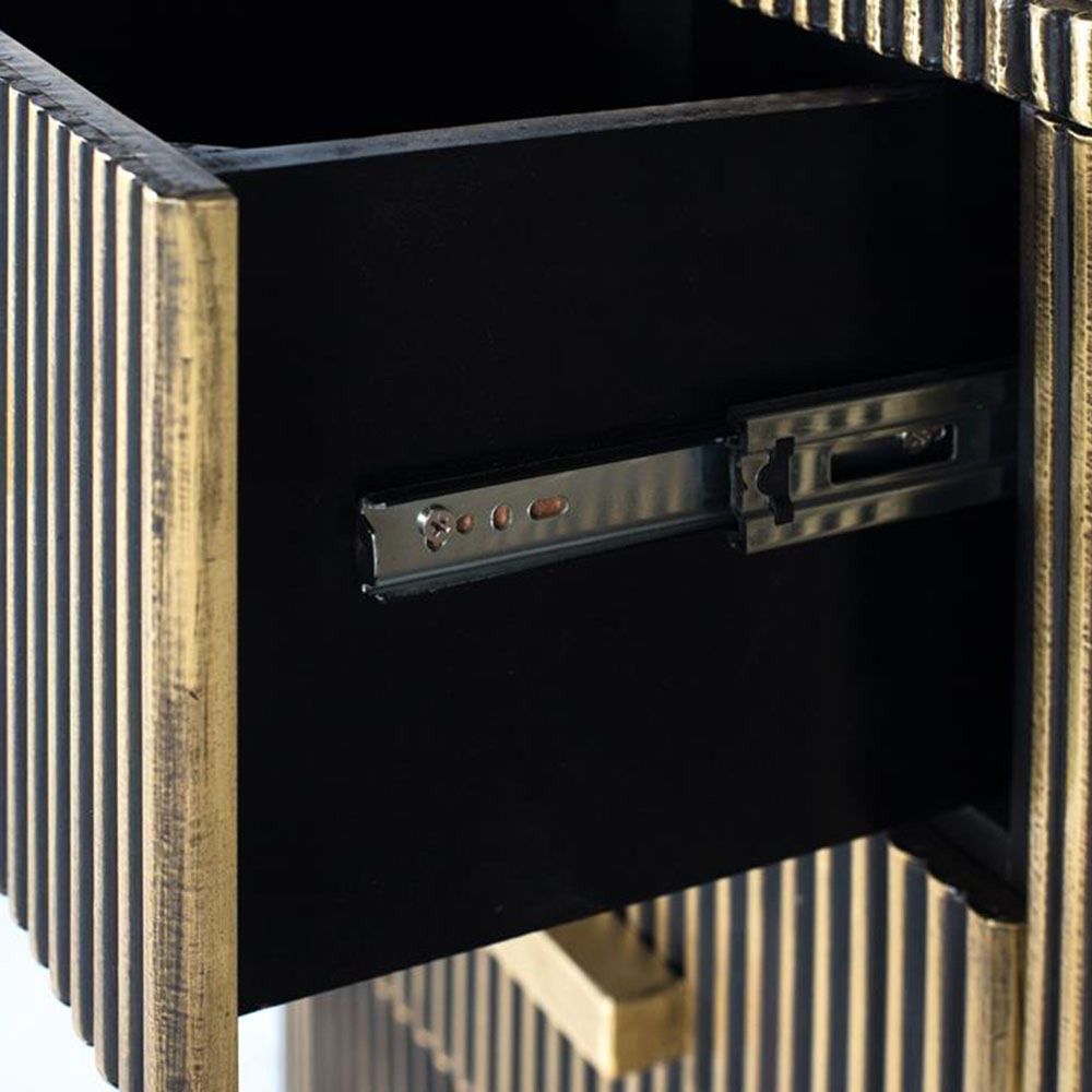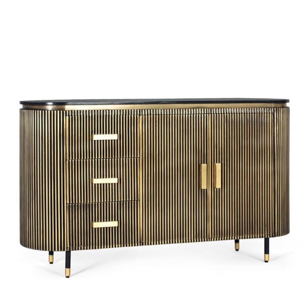 Stephen Sideboard - Ribbed Brass - Curved - 2 Door - Medium - Black Marble Top