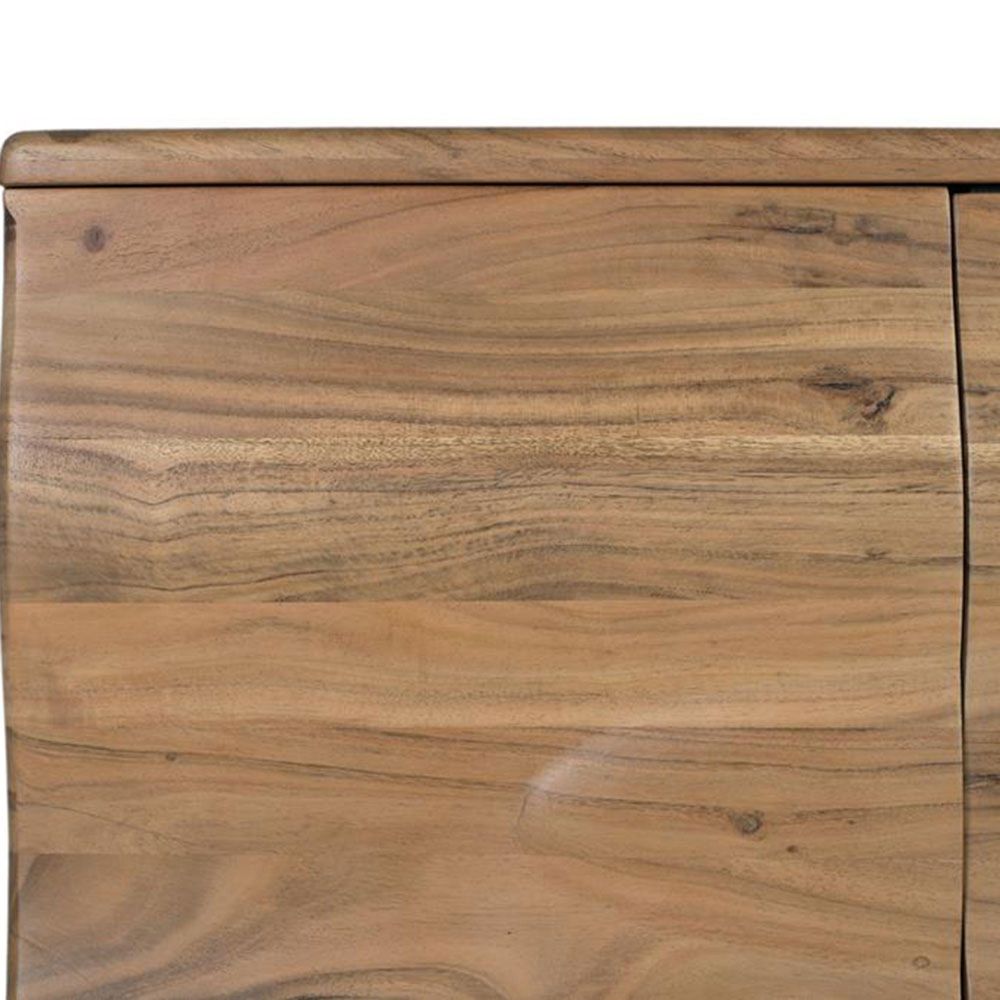 Item Code: 1852 4-door sideboard made of solid acacia wood. The wavy detail on the doors provides visual texture, creating shadows and reflections that enhance the natural beauty of the wood. Inside, the sideboard features shelves that provide ample storage space and the legs of the sideboard are designed to give it a modern touch.