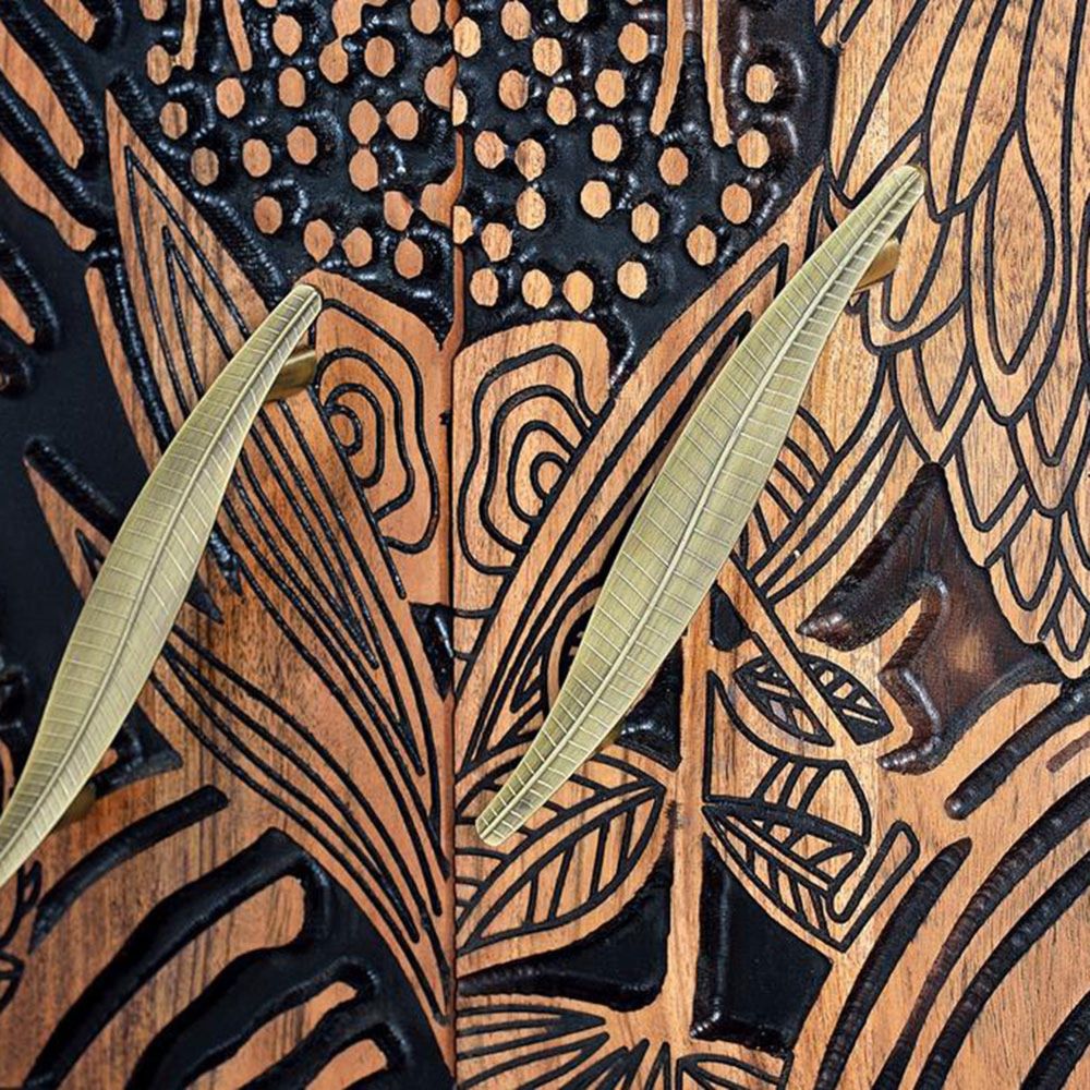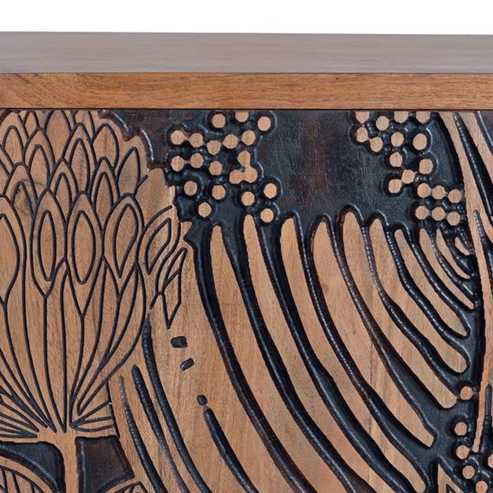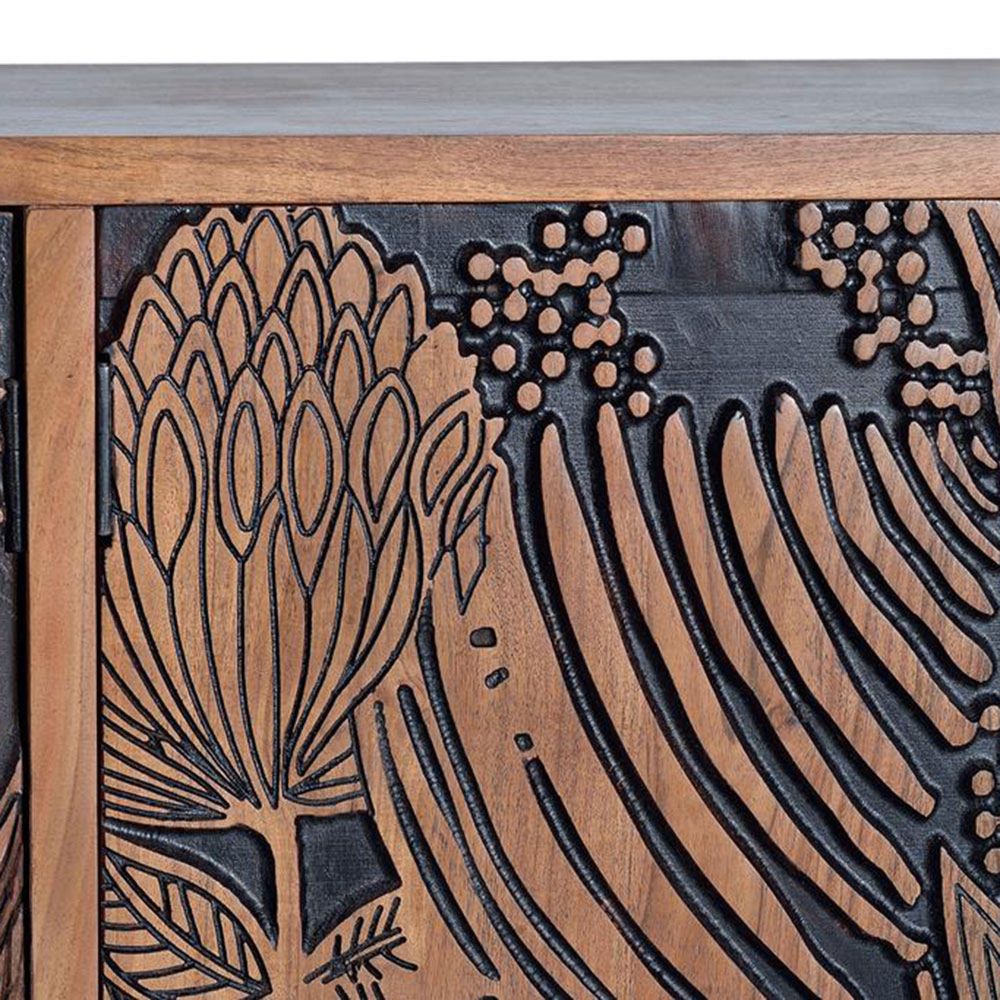 Item Code: 1208 HAND CARVED ACACIE WOOD SIDEBOARD WITH INTERNAL SHELVES