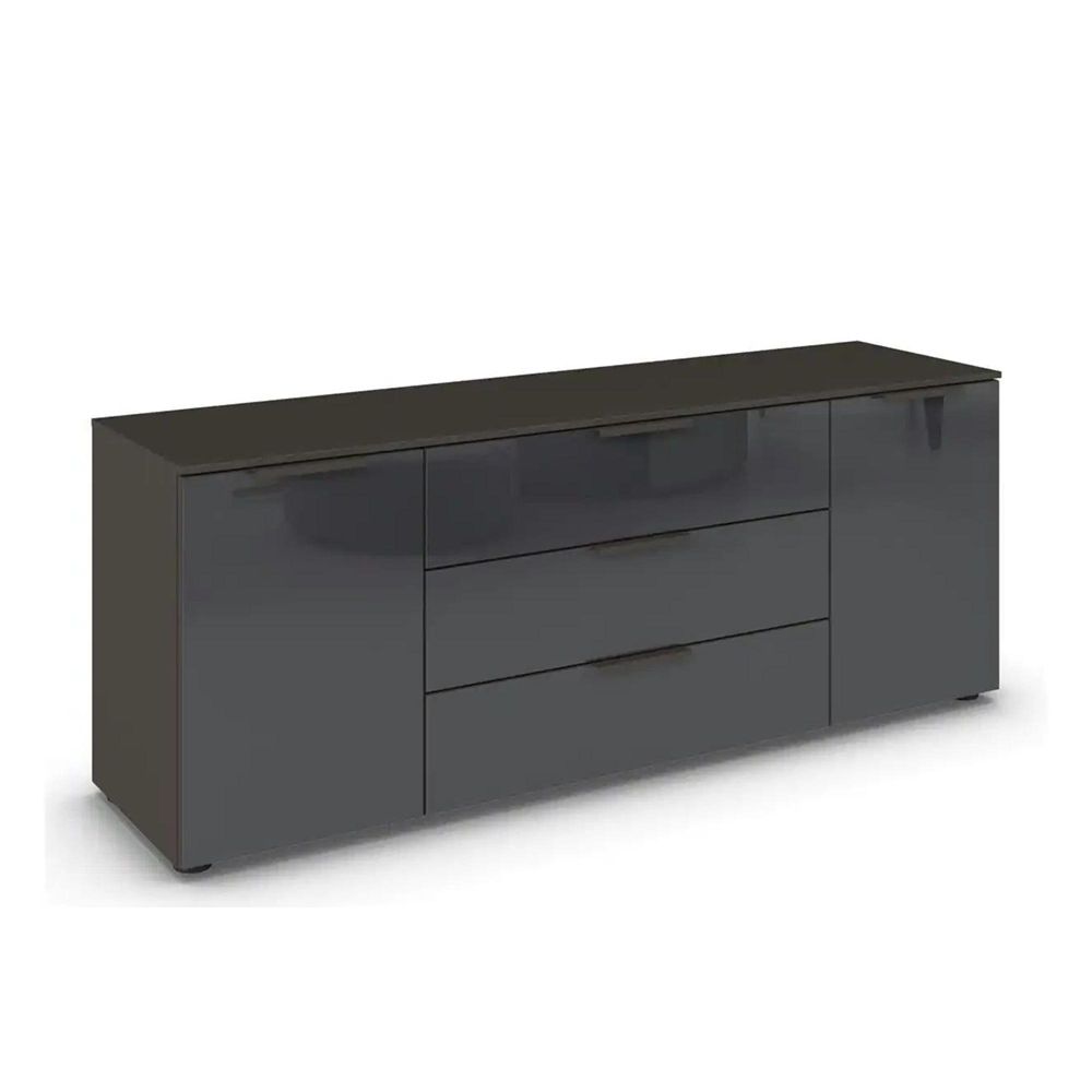 Rauch Flipp 2 Door Low Sideboard with Adjustable Height - 160cm - Graphite and Basalt Glass
