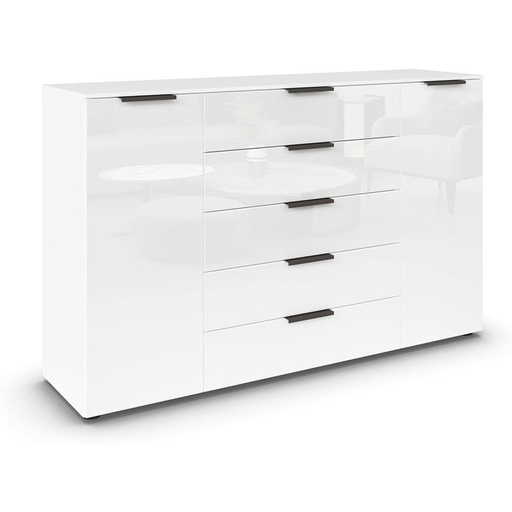 Rauch Flipp 2 Door Sideboard with Adjustable Height - 160cm - Alpine White and White Glass
