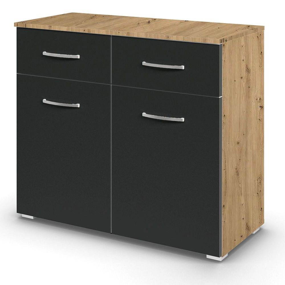 Rauch Aditio 2 Door Small Sideboard - 80cm - Artisan Oak and Metallic Dark Grey