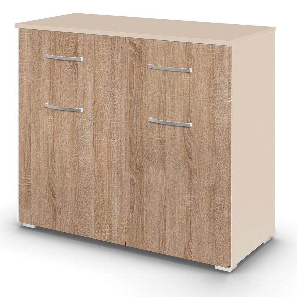 Rauch Aditio 2 Door Small Sideboard - 80cm - Champagne and Sonoma Oak