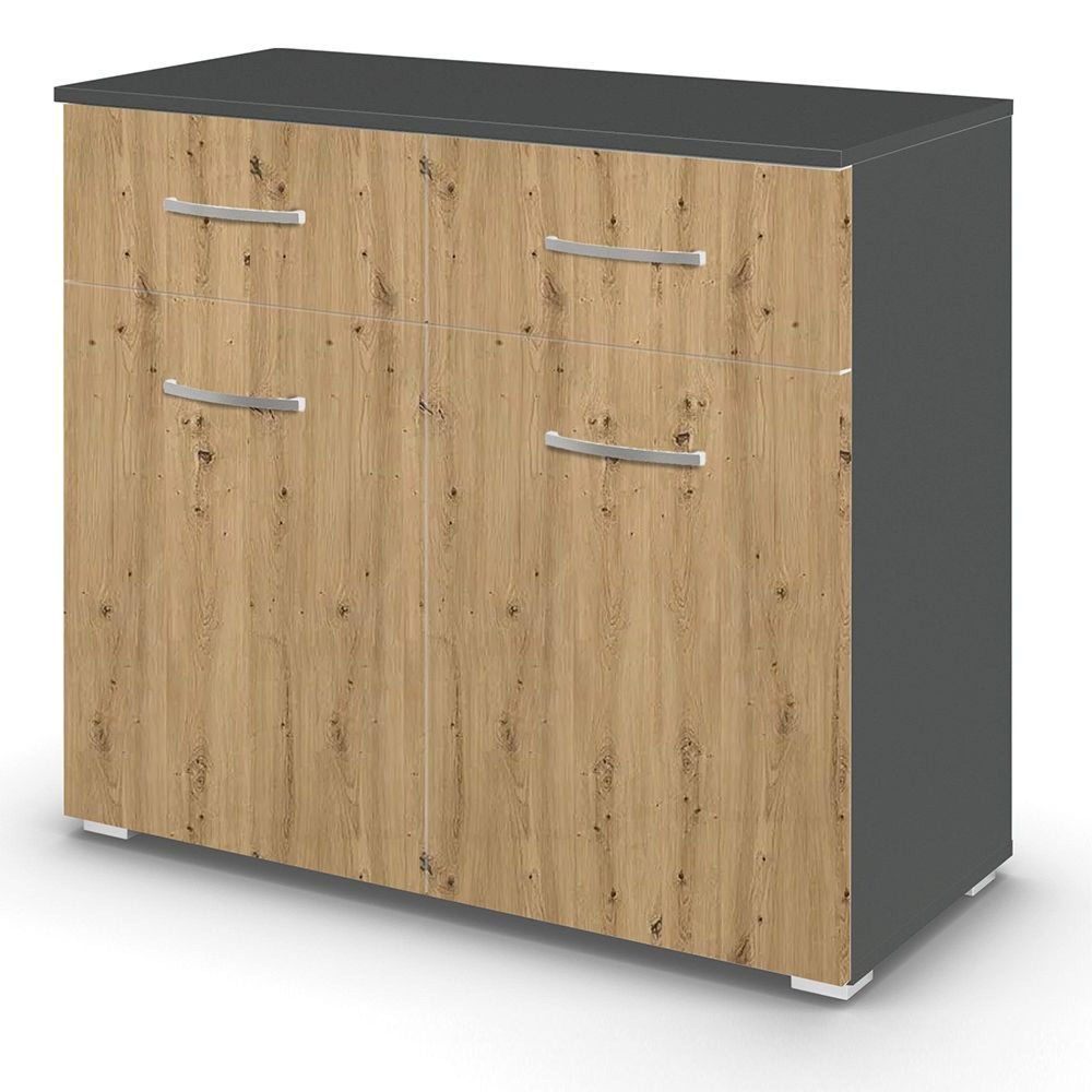 Rauch Aditio 2 Door Small Sideboard - 80cm - Metallic Dark Grey and Artisan Oak