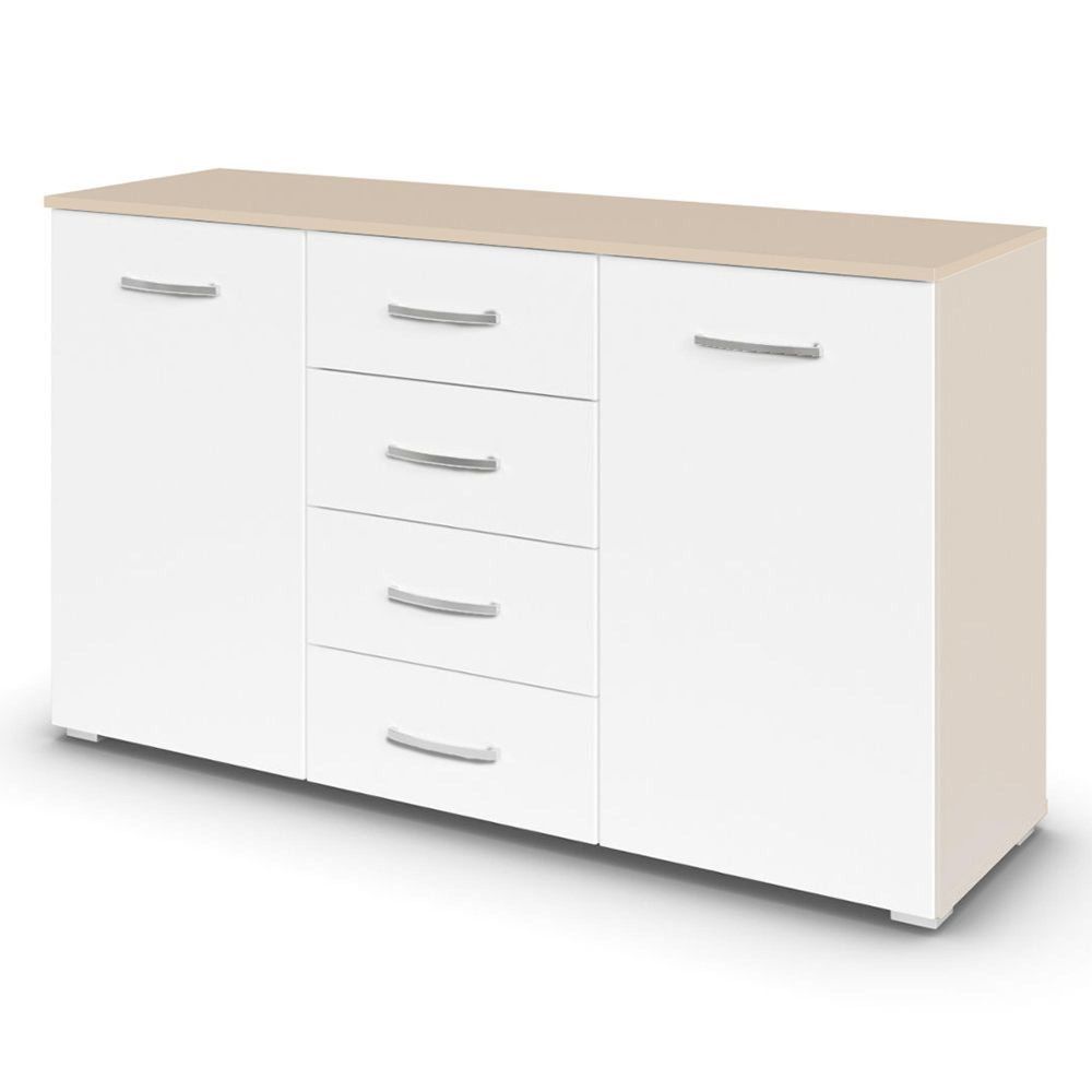 Rauch Aditio 2 Door Medium Sideboard with 4 Drawer - 120cm - Champagne and Alpine White
