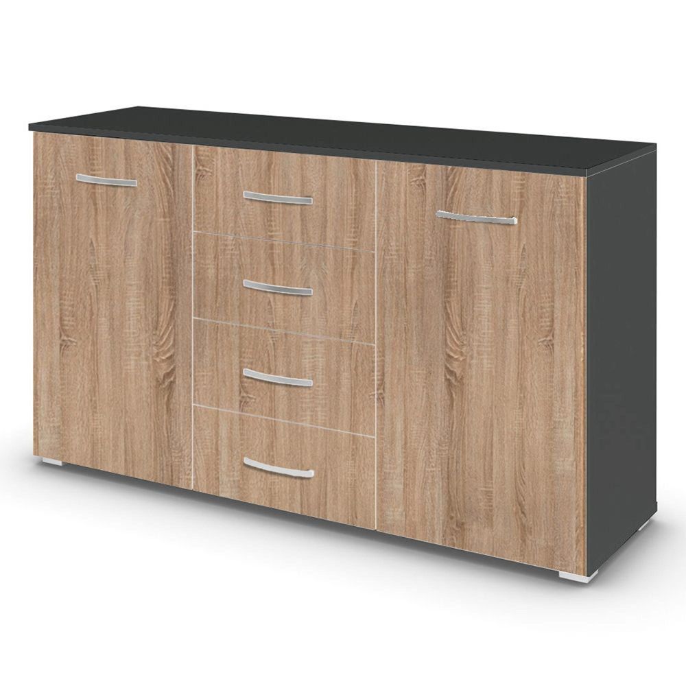 Rauch Aditio 2 Door Medium Sideboard with 4 Drawer - 120cm - Metallic Dark Grey and Sonoma Oak