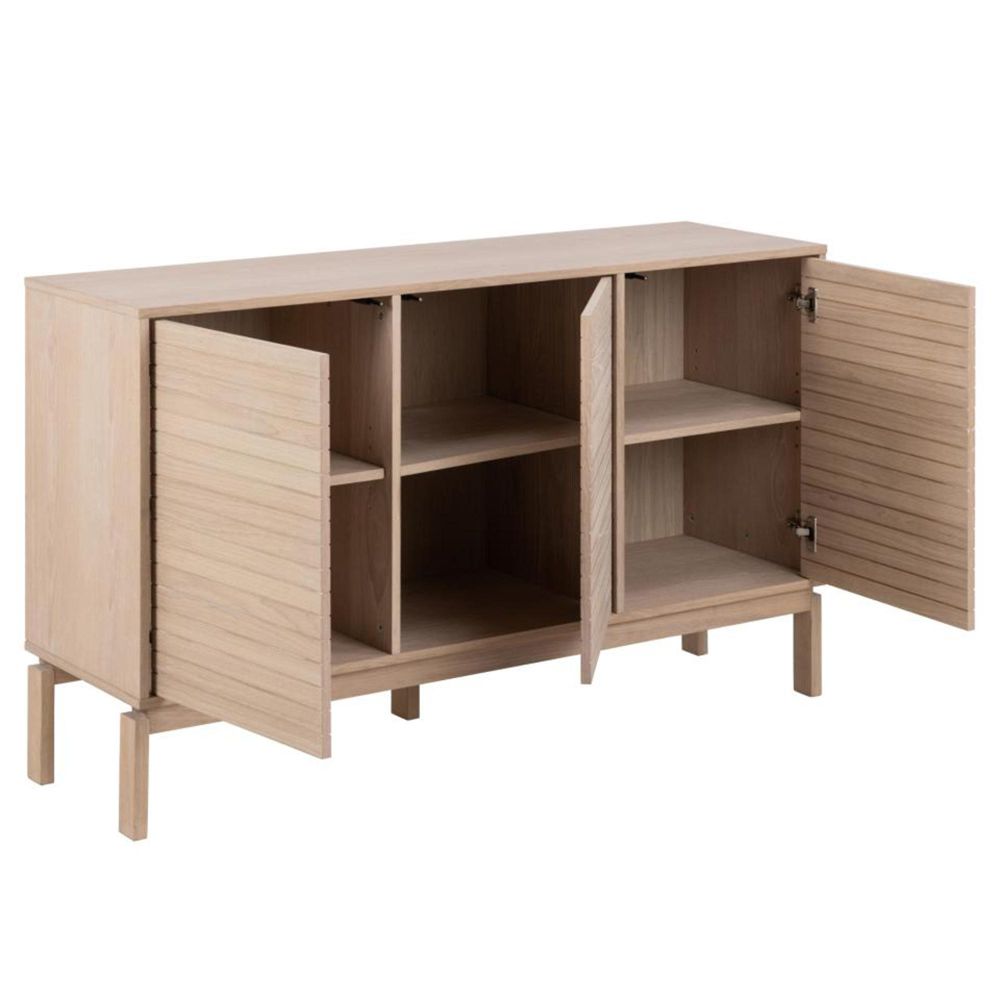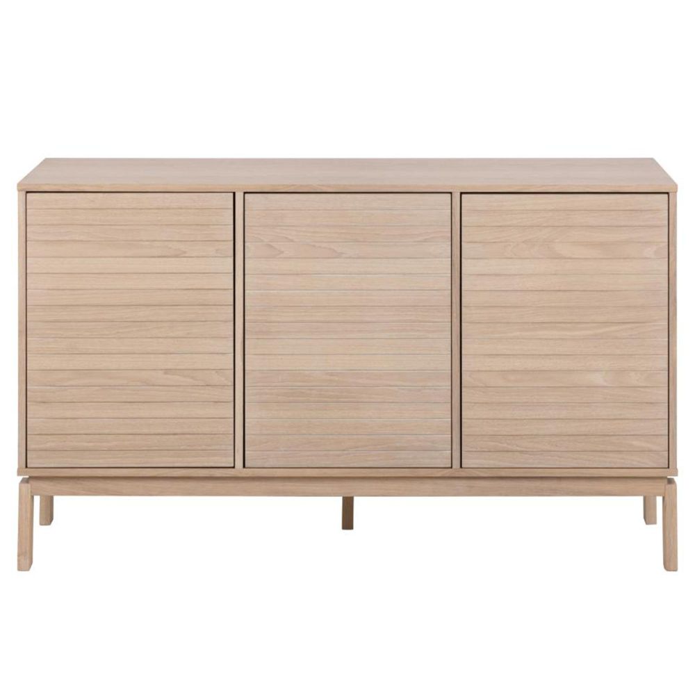 Item Code: H000022821 Linley sideboard, top, frame, 3 doors and 3 shelves white pigmented oiled oak veneer, base white pigmented oiled oak with lamella front and push to open function.Offering both storage and harmonious design this sideboard will be perfect for both modern and traditional spaces. Hide your bits and bobs on the three adjustable shelves behind the three doors - and while you are at it, remember to admire those lamella fronts that provide an interesting detail and optic illusion.Free Delivery
