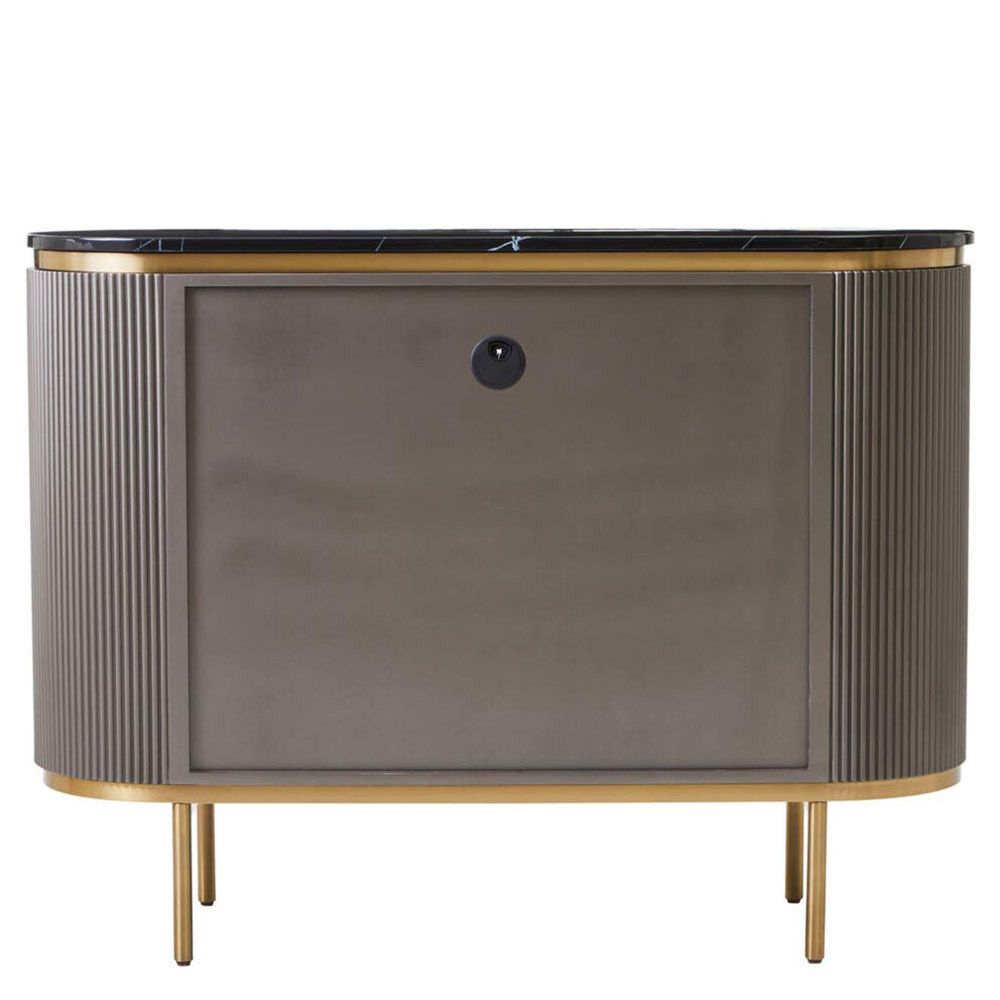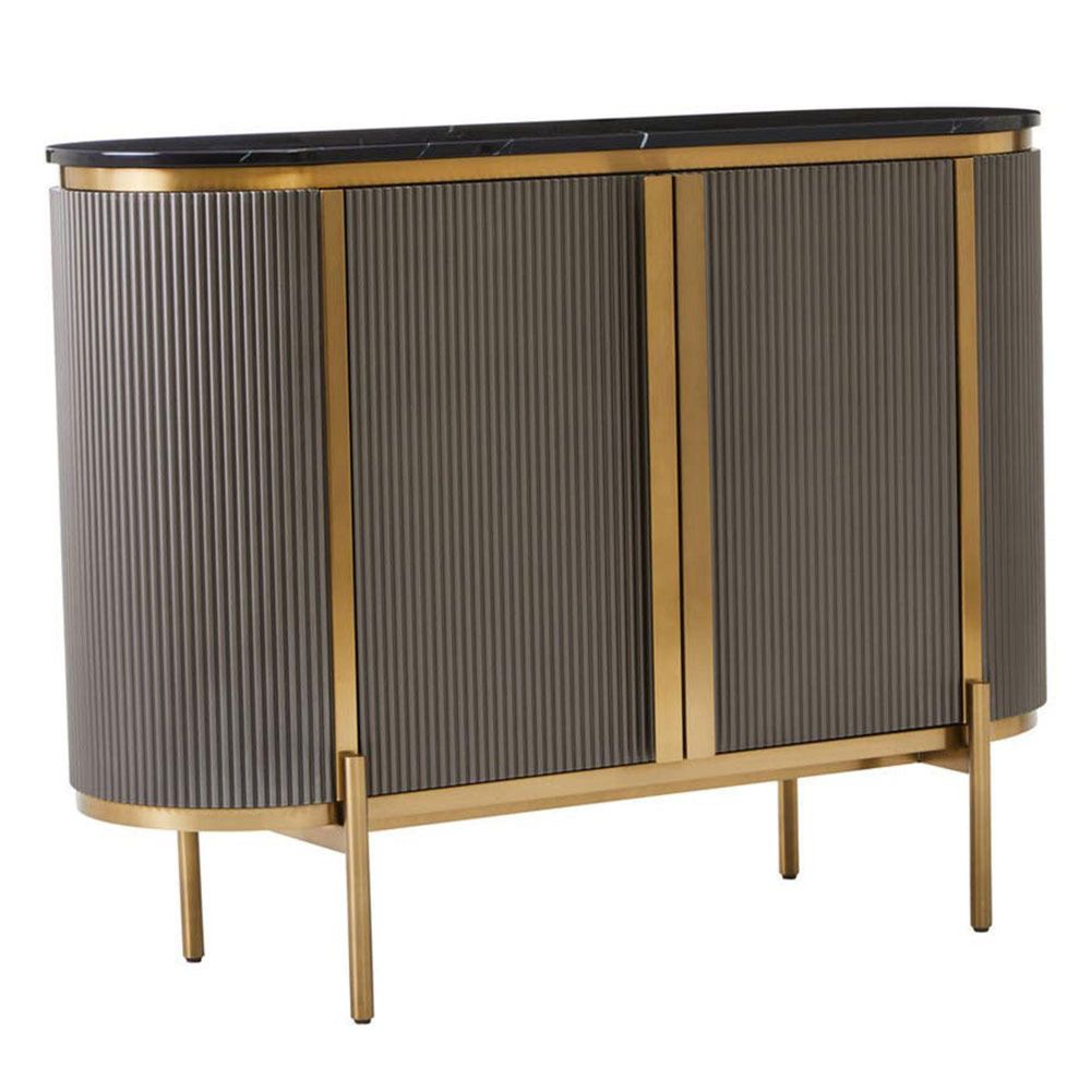 Dervio Sideboard - 2 Door - Small - Grey Fluted - Curved with Black Marble Top - 120cm