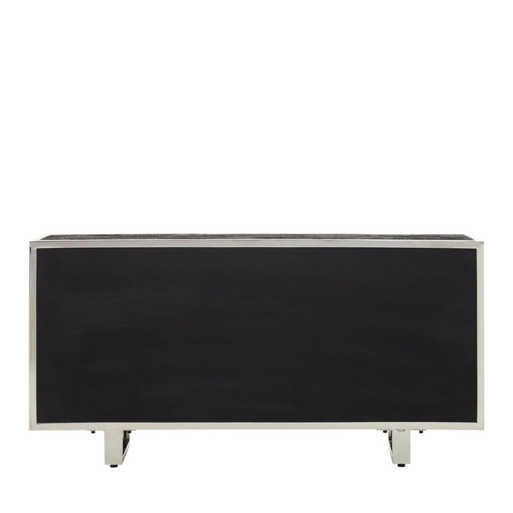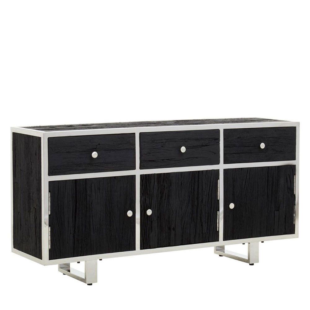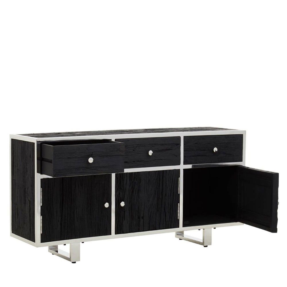 Item Code: 5529599 The Kerala unit comes in black wood providing a timeless style, with the silver lined edges giving a streamlined look.This sideboard is the perfect blend of style and functionality with its black and silver lined edges, featuring three drawers and three cabinets. The glass top blends with the silver to give a sleek and modern aesthetic.